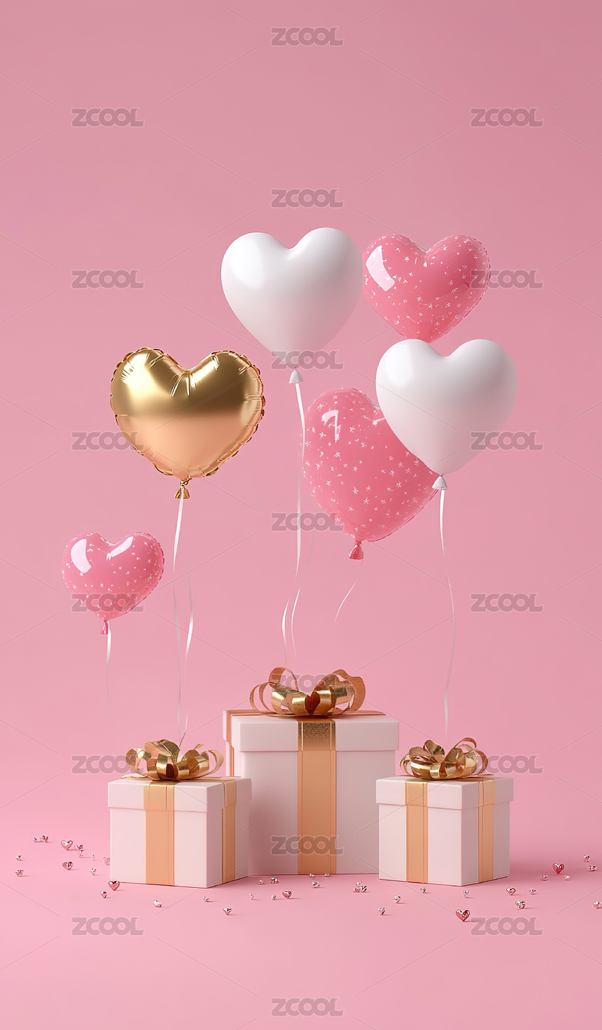 粉色心形和礼物盒的节日装饰