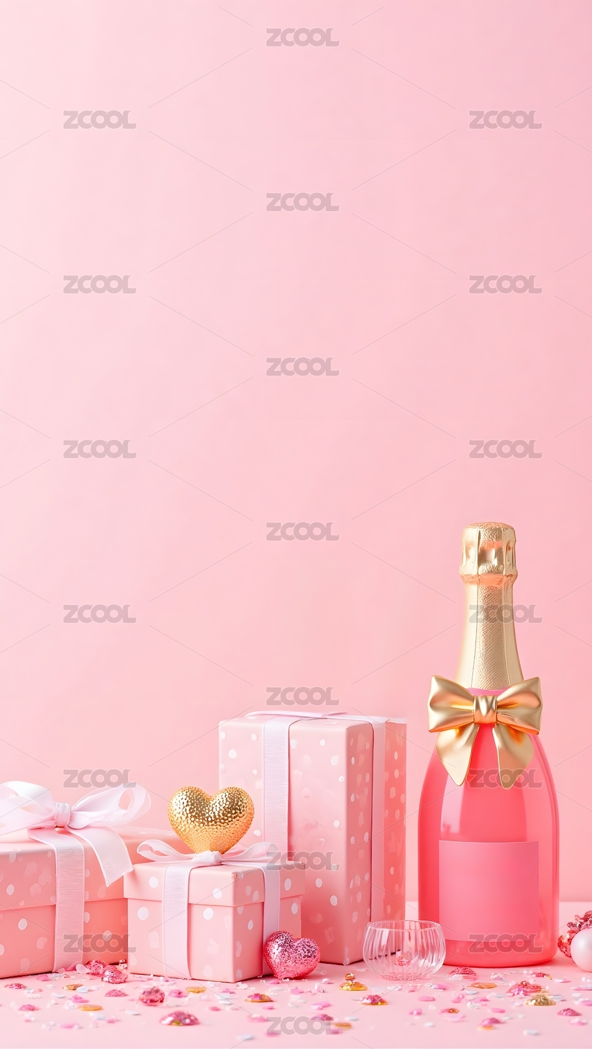 粉色香槟礼盒爱心装饰场景