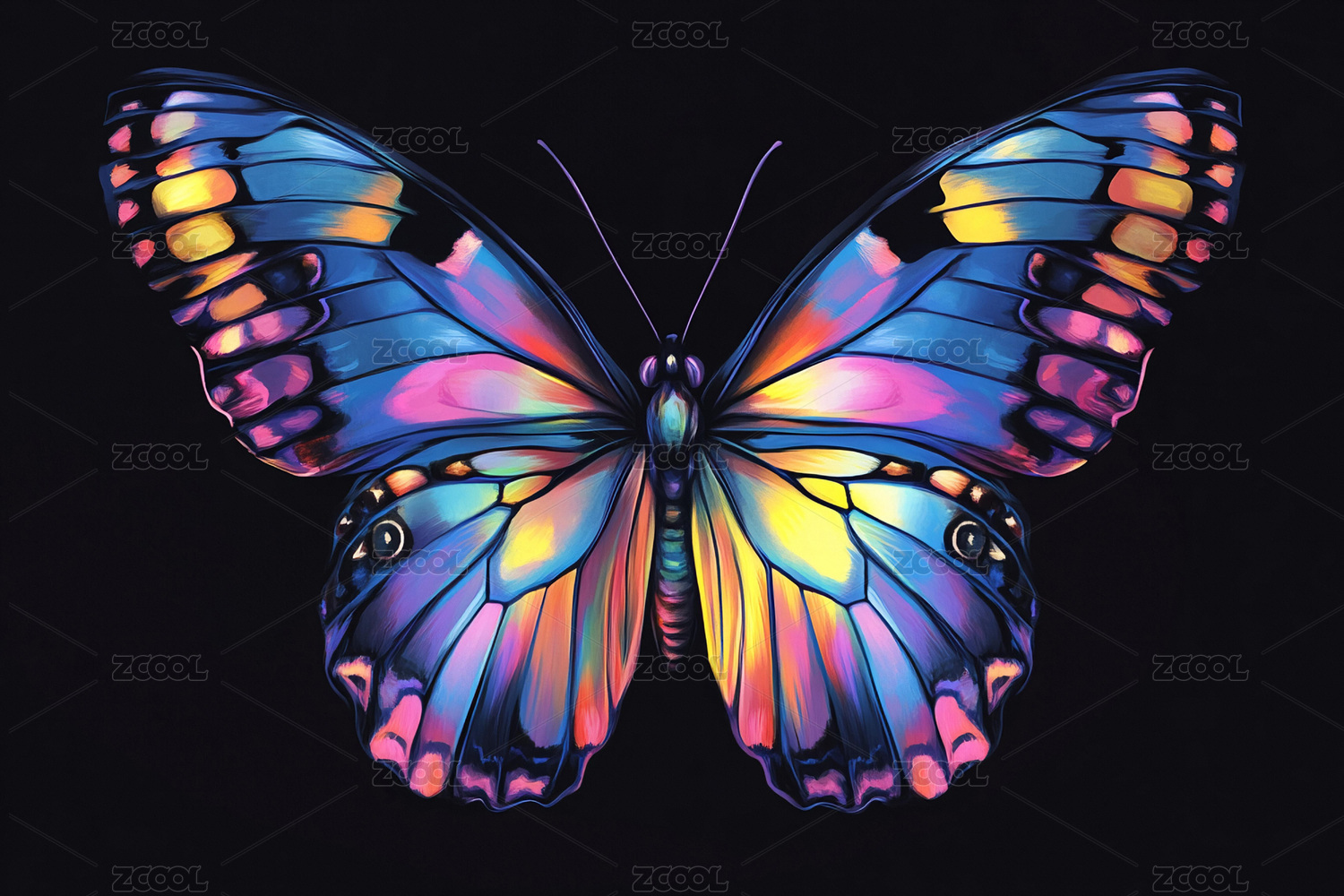 梦幻绚丽双色蝴蝶闪耀黑背景