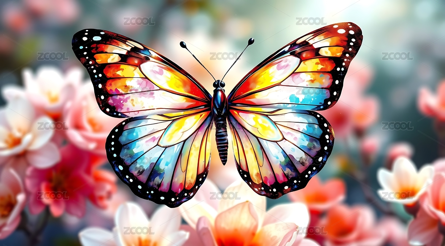 色彩丰富立体蝴蝶的视觉突出艺术画面