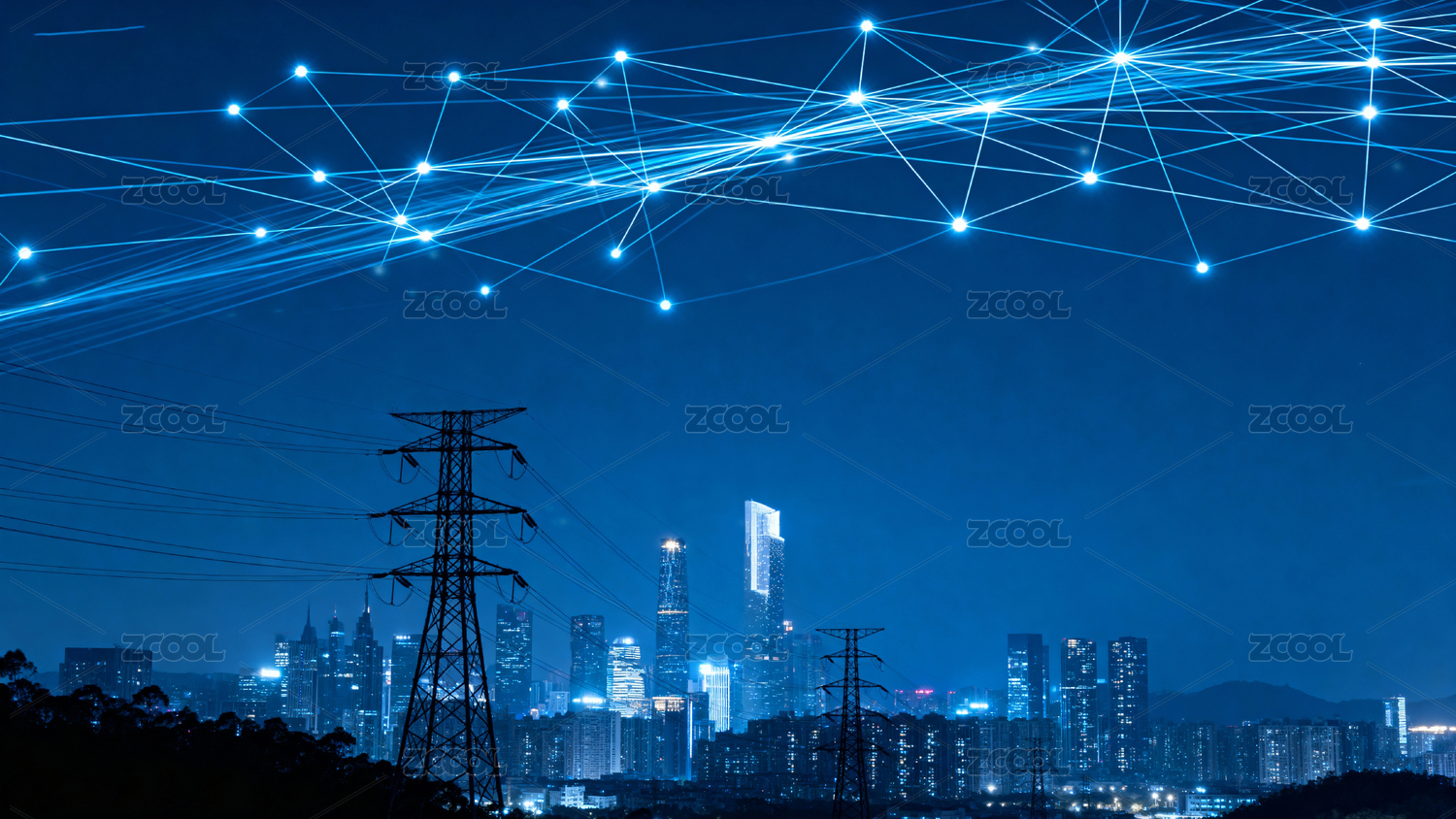 城市夜景与电力网络交织图