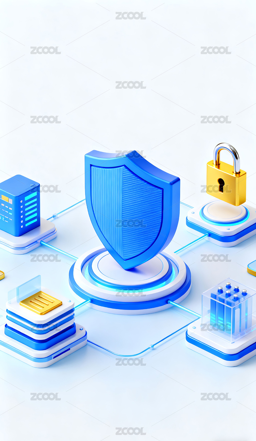 白色,平面,设计,插画,盾牌,安全,圆形,图标,光影,蓝色