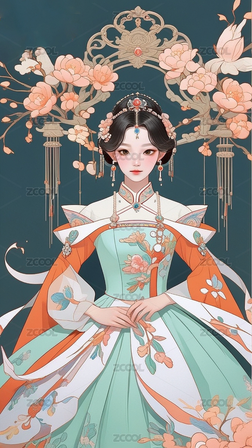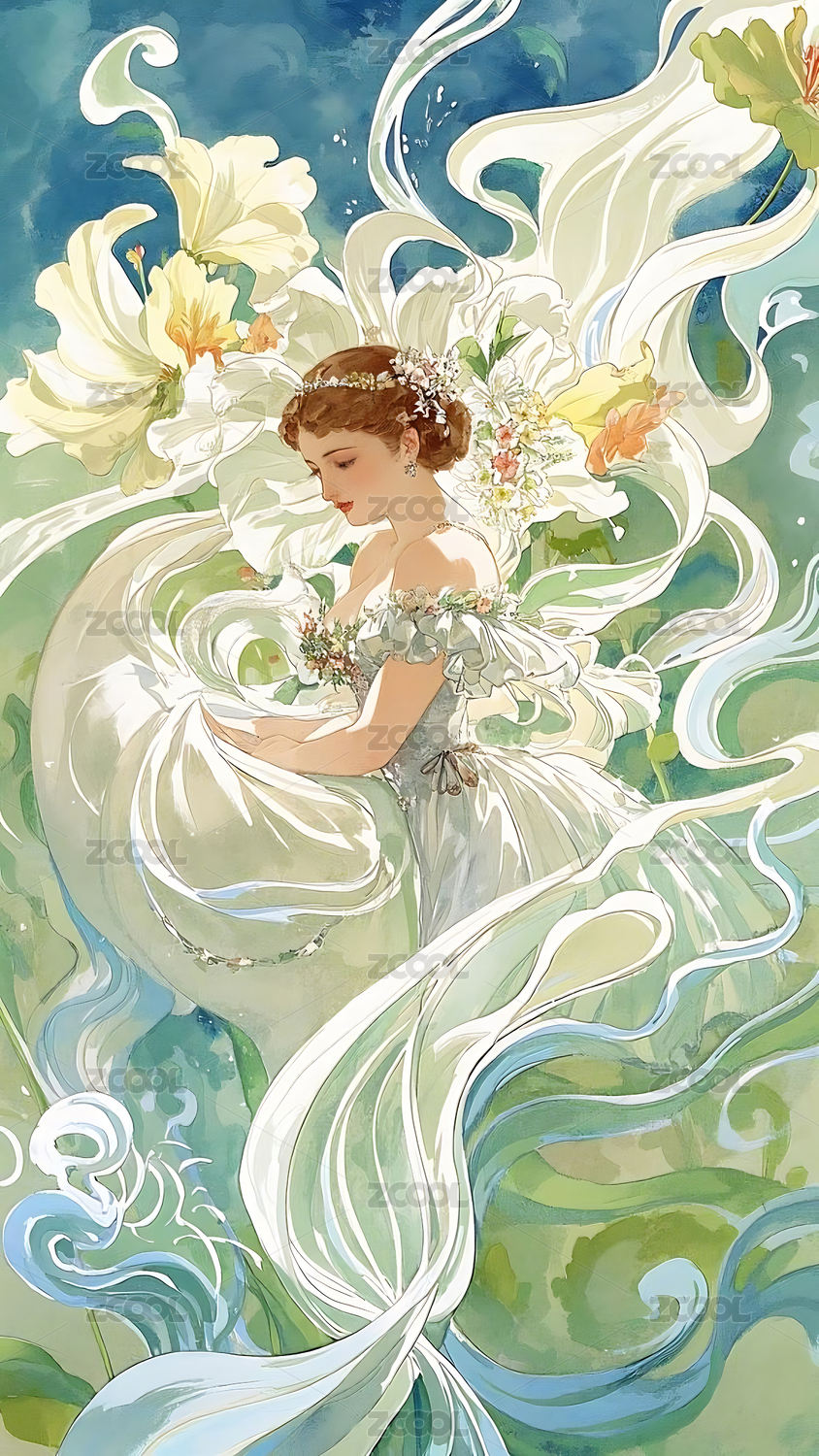 艺术,绘画,风格,唯美,氛围,清新,绿色,梦幻,人物,插画