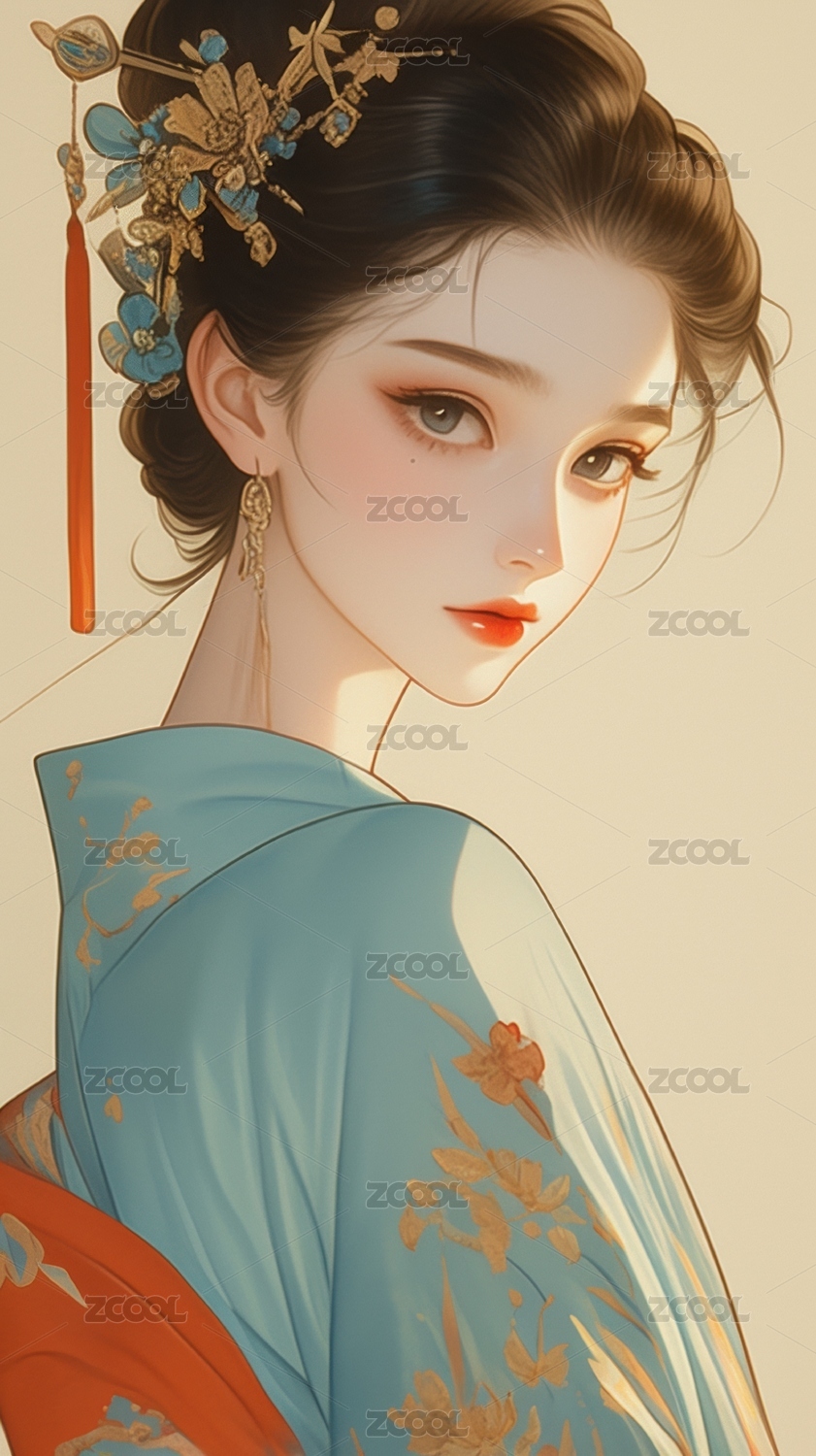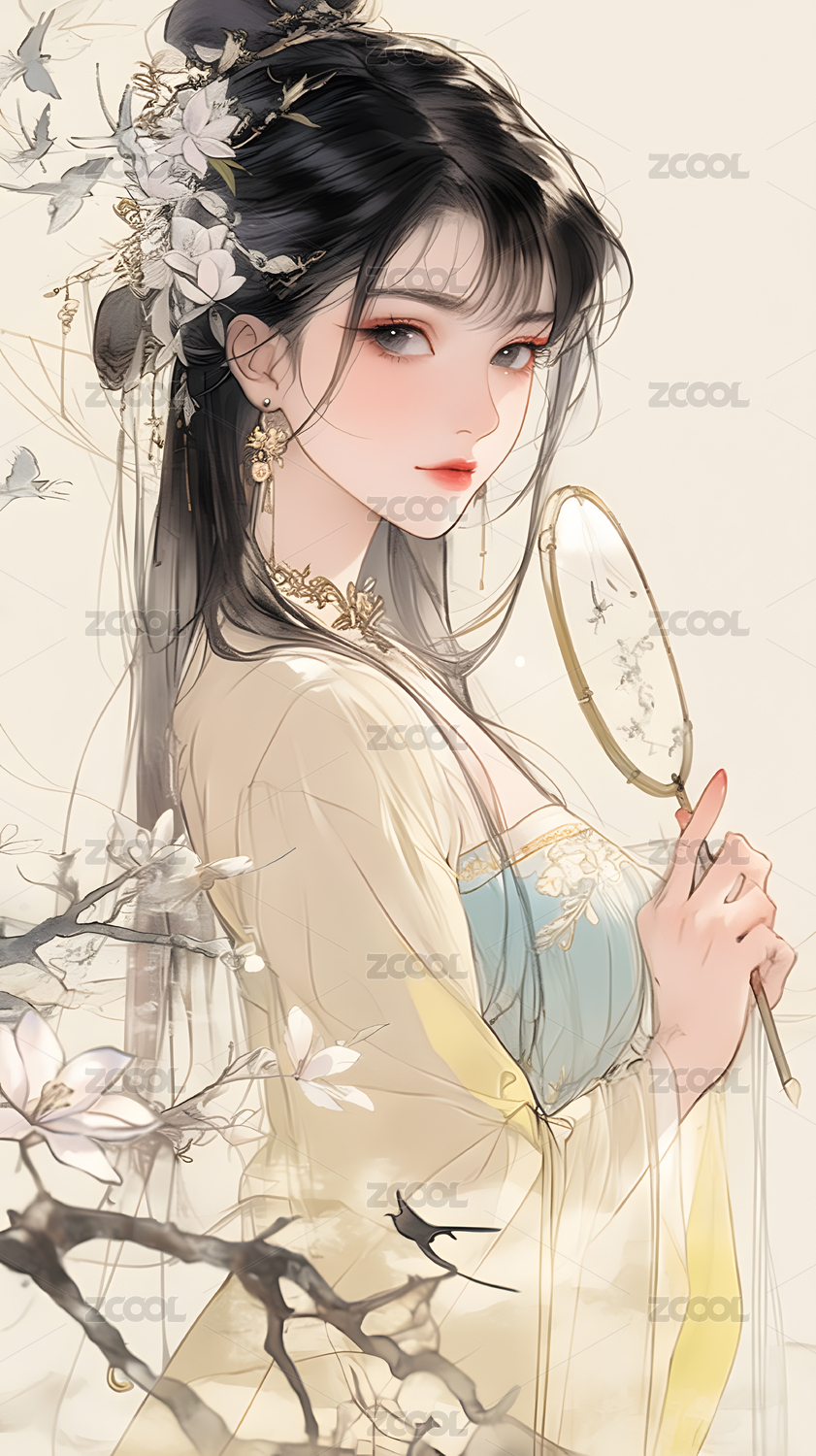 装饰,细节,艺术,优雅,黄色,背景,东方,唯美,人物,风格