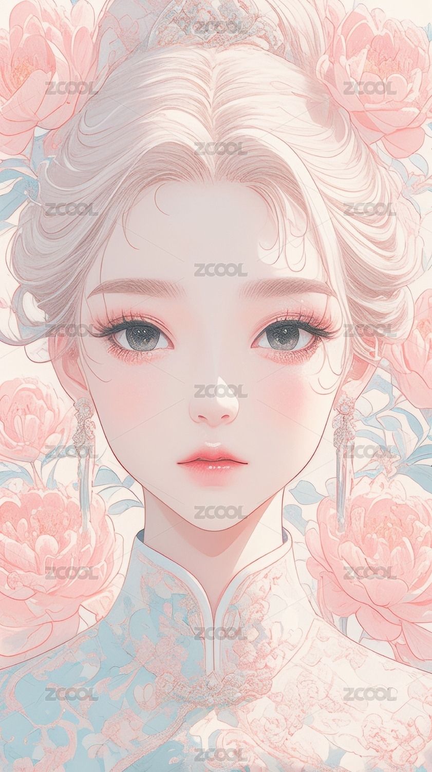 公主画像,玫瑰花环,金饰装点,古典优雅