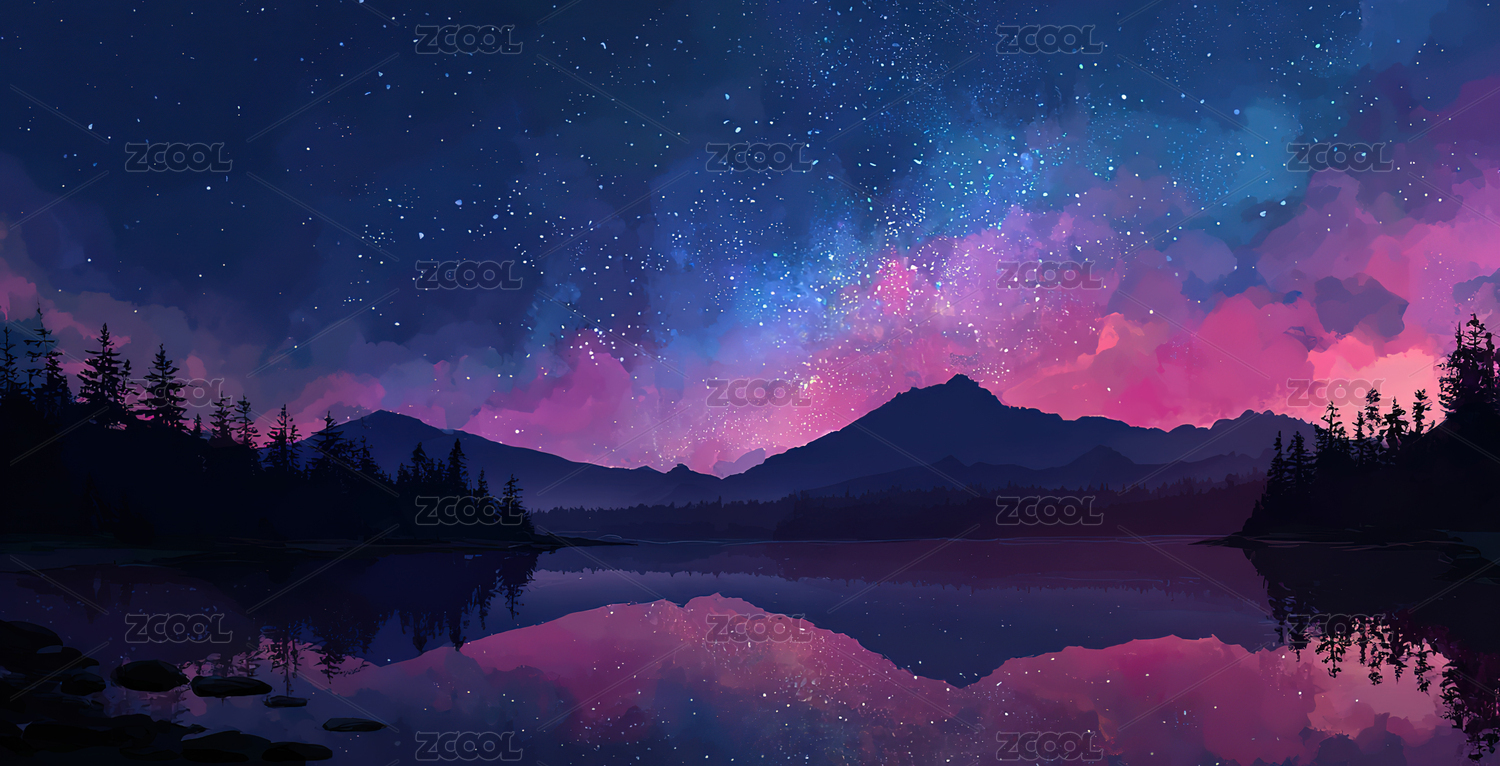 手绘唯美的抽象艺术感夜晚天空风景插画
