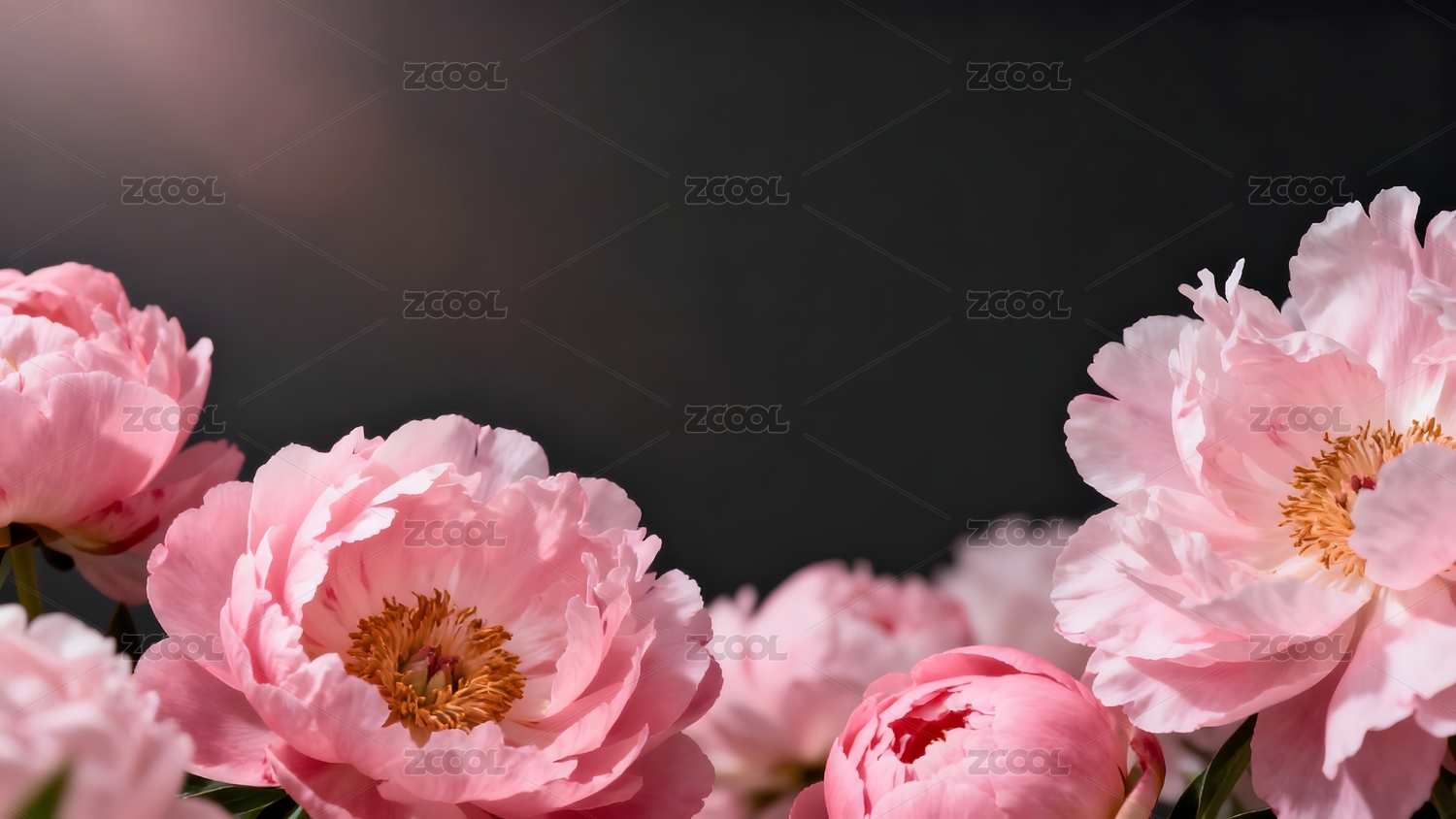 粉色,圆形,牡丹,花朵,花瓣,黑色,背景,光影,模糊,绿色