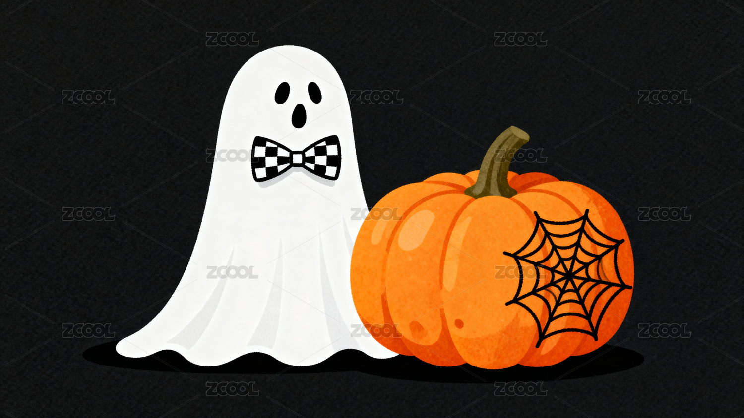 万圣节提着南瓜灯糖果篮子的鬼魂