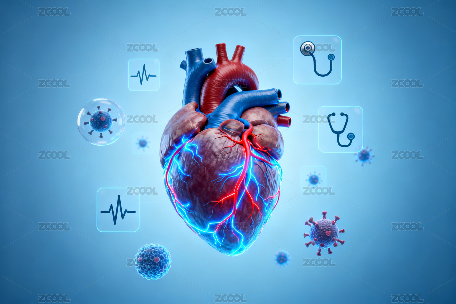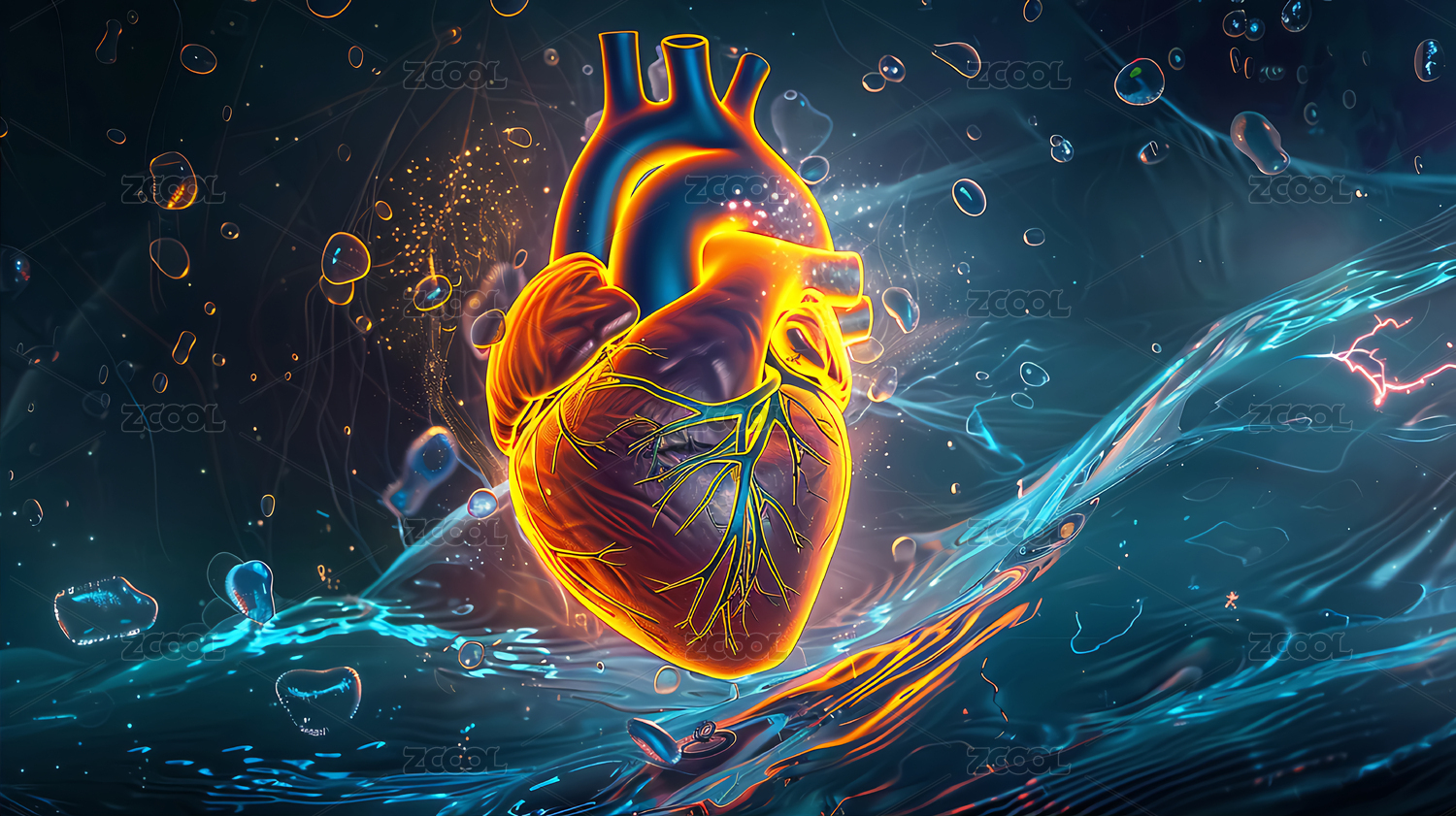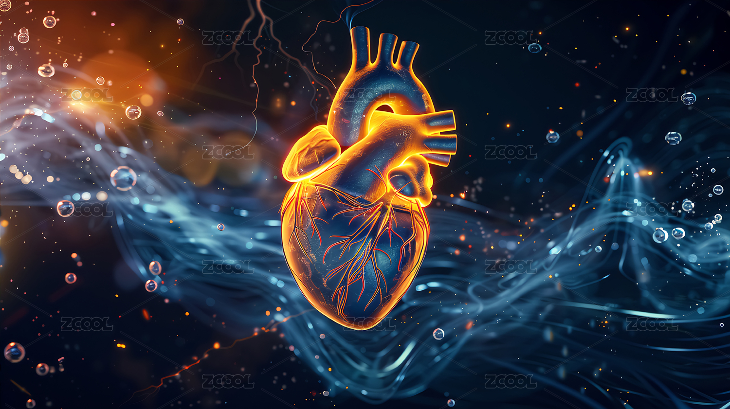 光效,科技,背景,发光,健康,蓝色,结构,符号,心脏,血管