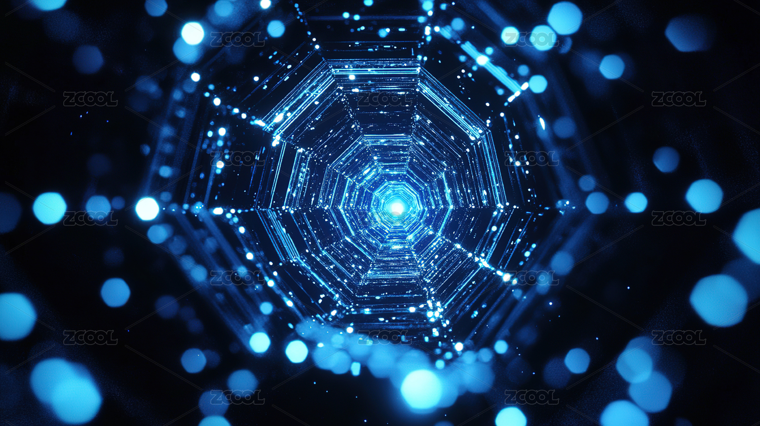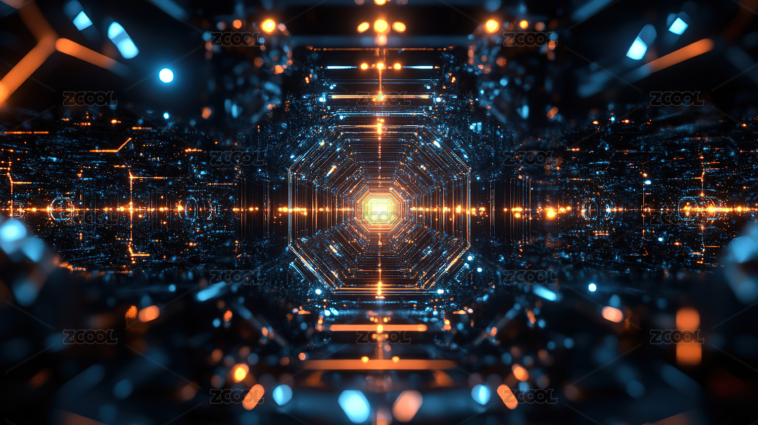 六边形,光效,线条,节点,中心,蓝色,橙色,几何,图案,科技