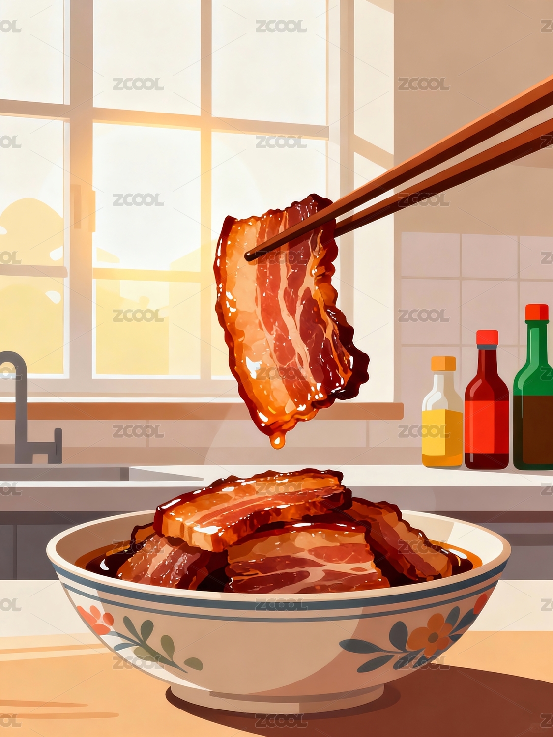 红烧肉美食插画展示