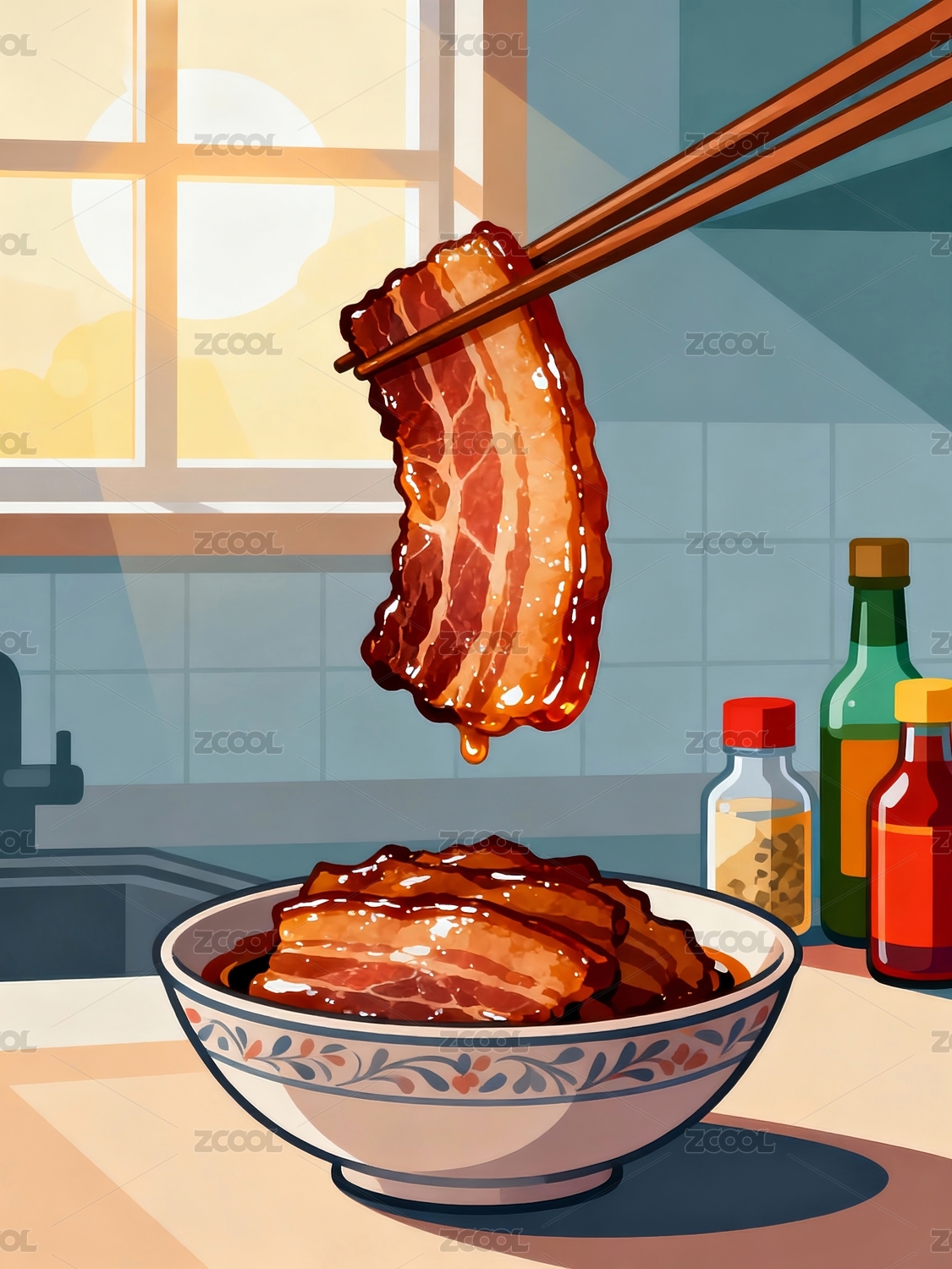 东坡肉插画
