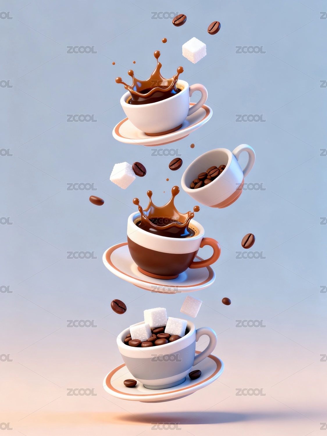 咖啡杯叠放创意场景展现