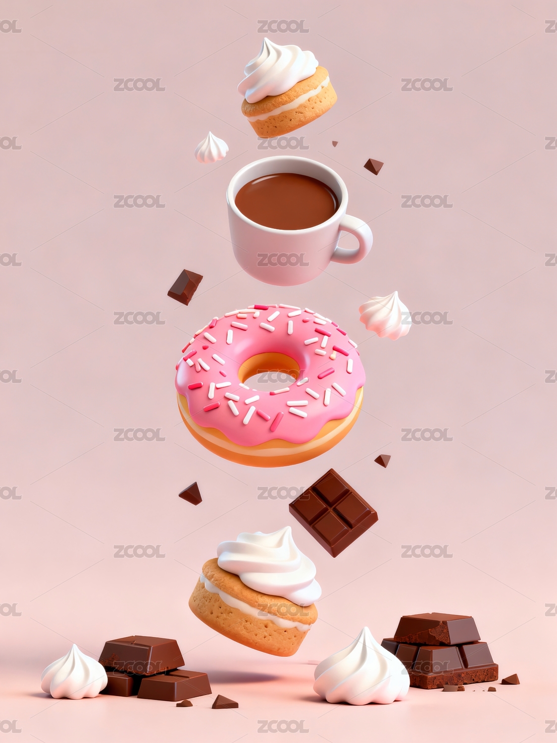 白色,咖啡,甜甜圈,巧克力,茶杯,饮品,漂浮,食物,美食,奶油