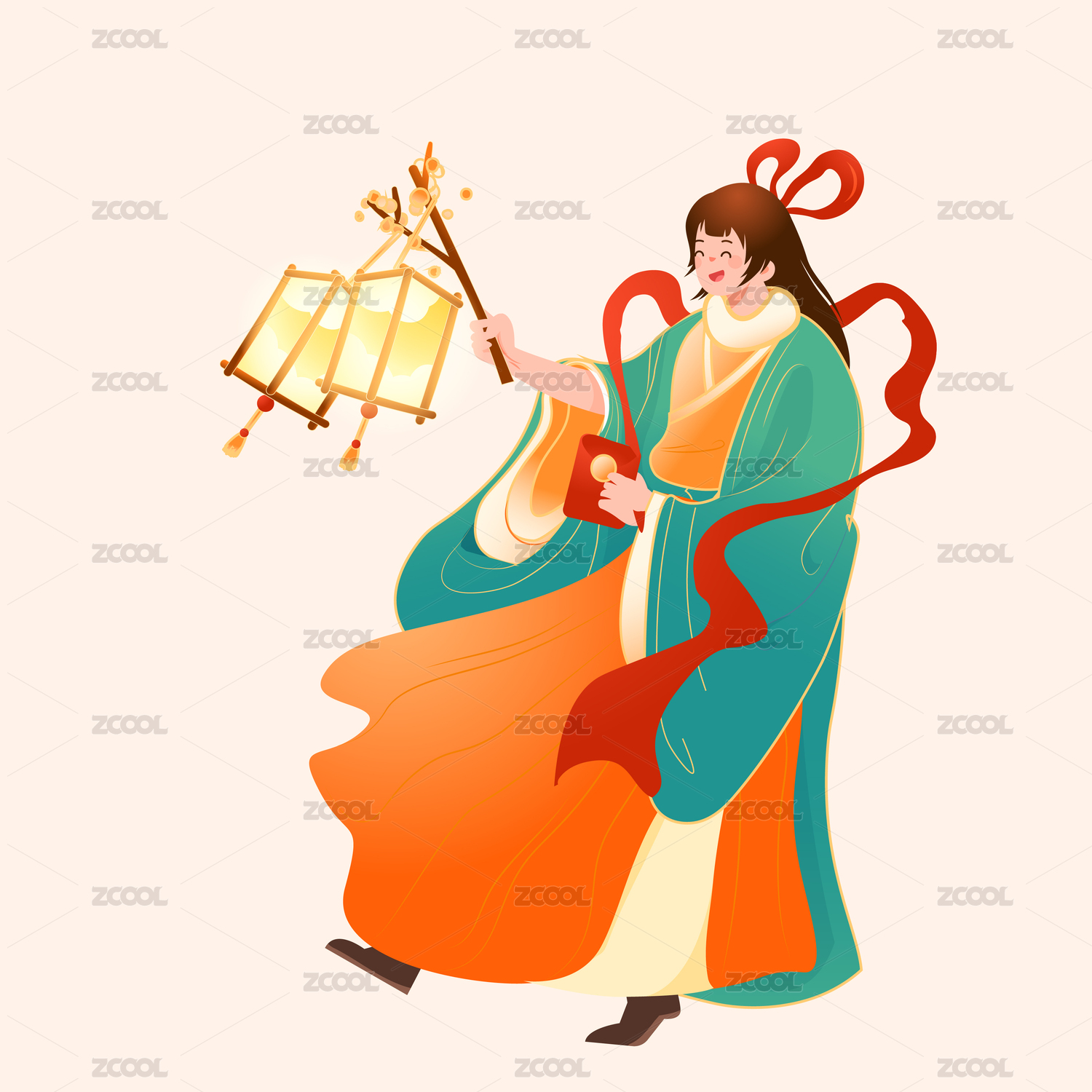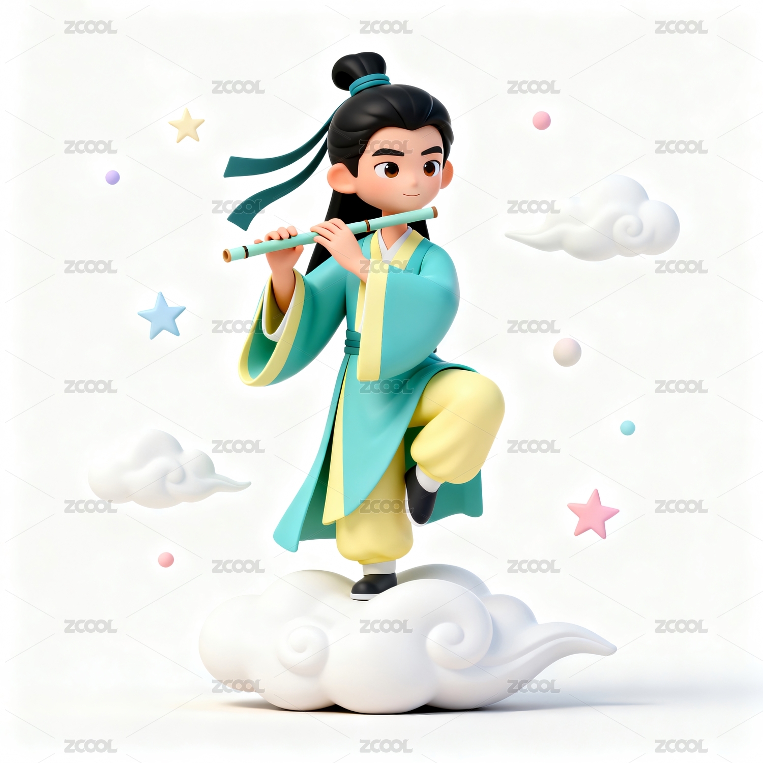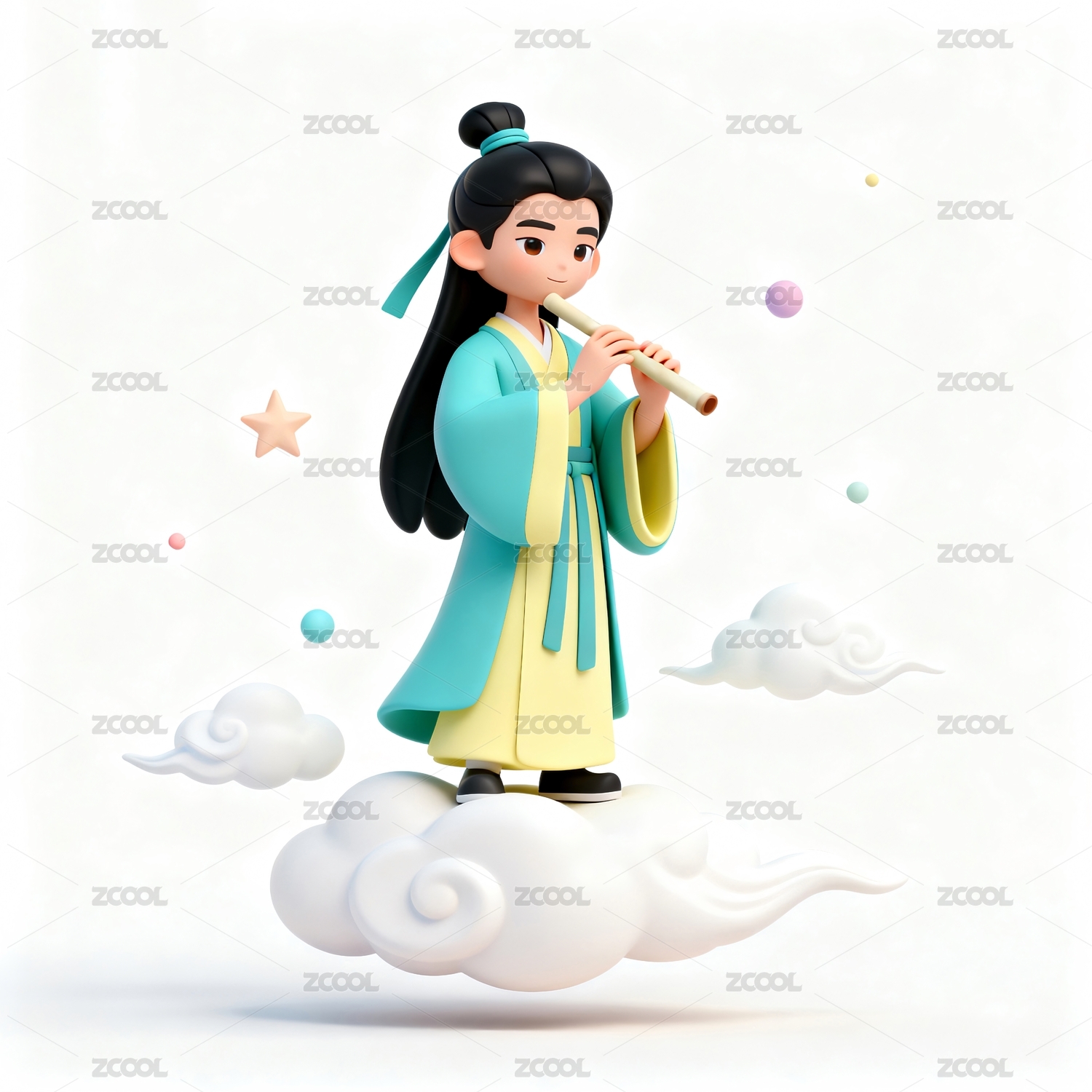 人物,环境,颜色,卡通,可爱,云朵,发髻,站立,飘带,微笑