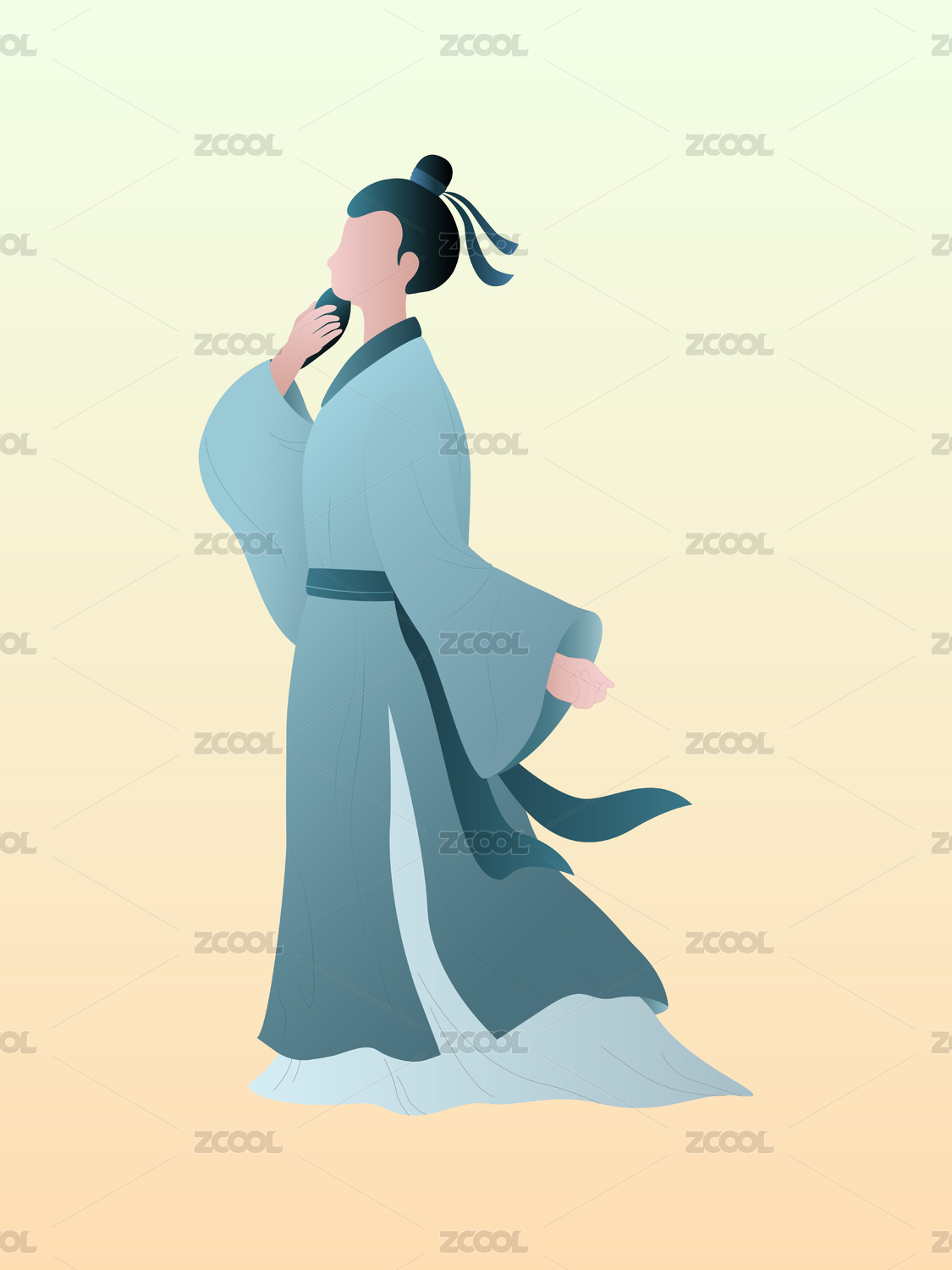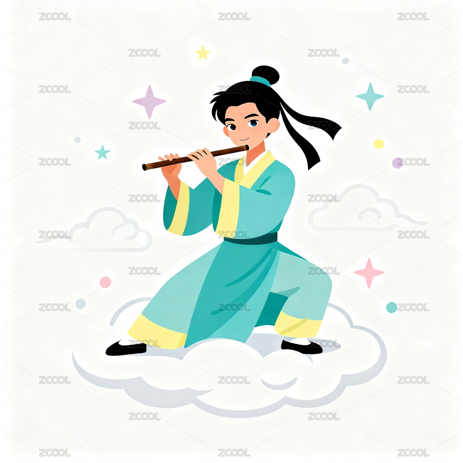 古装男性坐着吹笛子 中国风国际音乐日插画