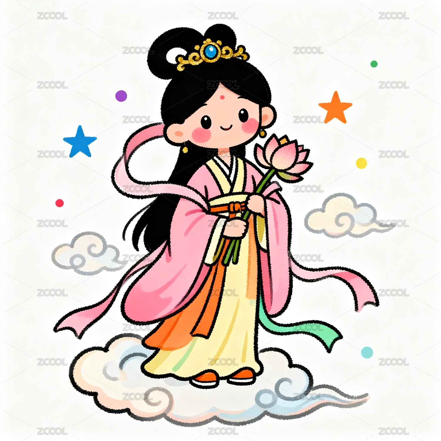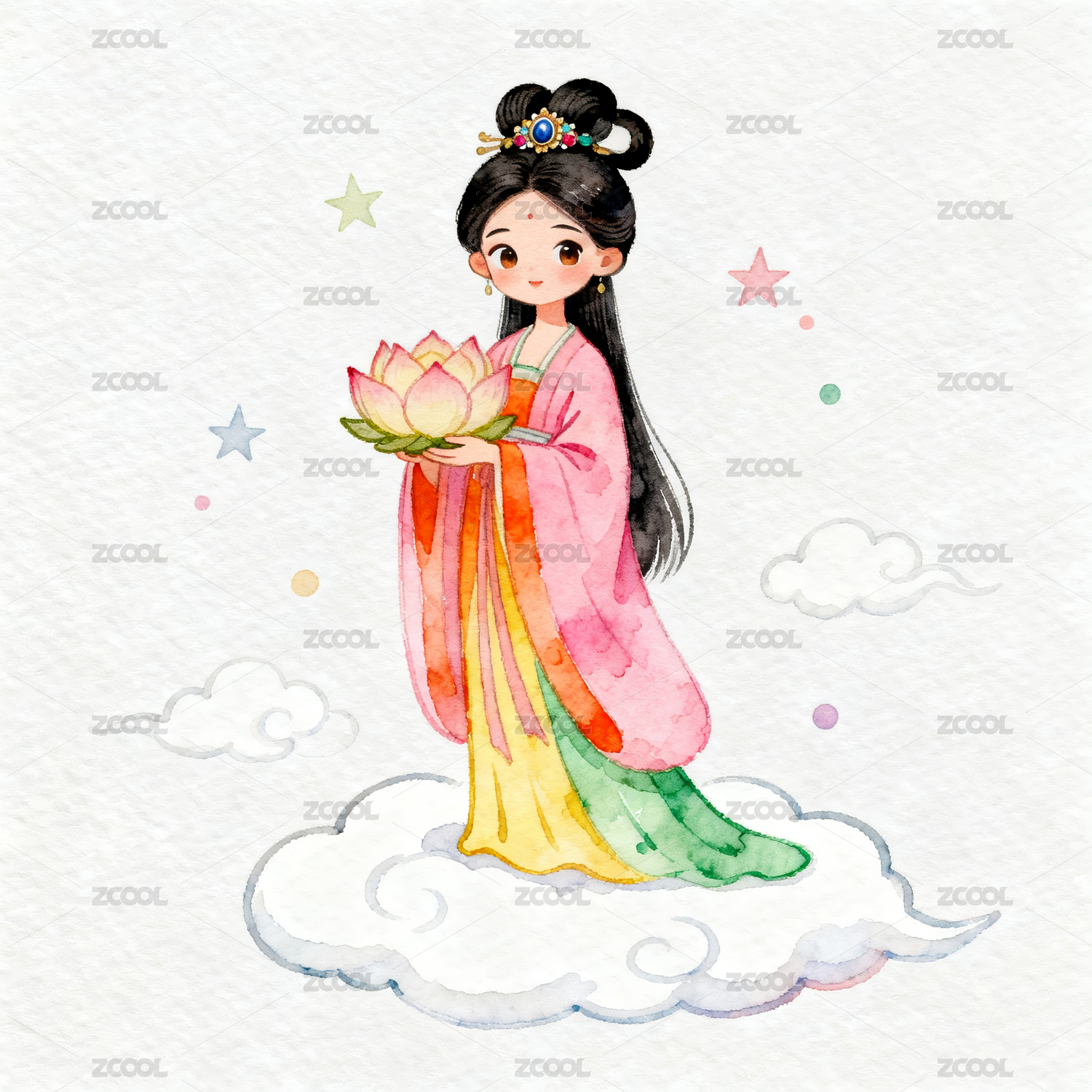 云朵,飘带,绿色,站立,可爱,卡通,人物,形象,头发,笑容