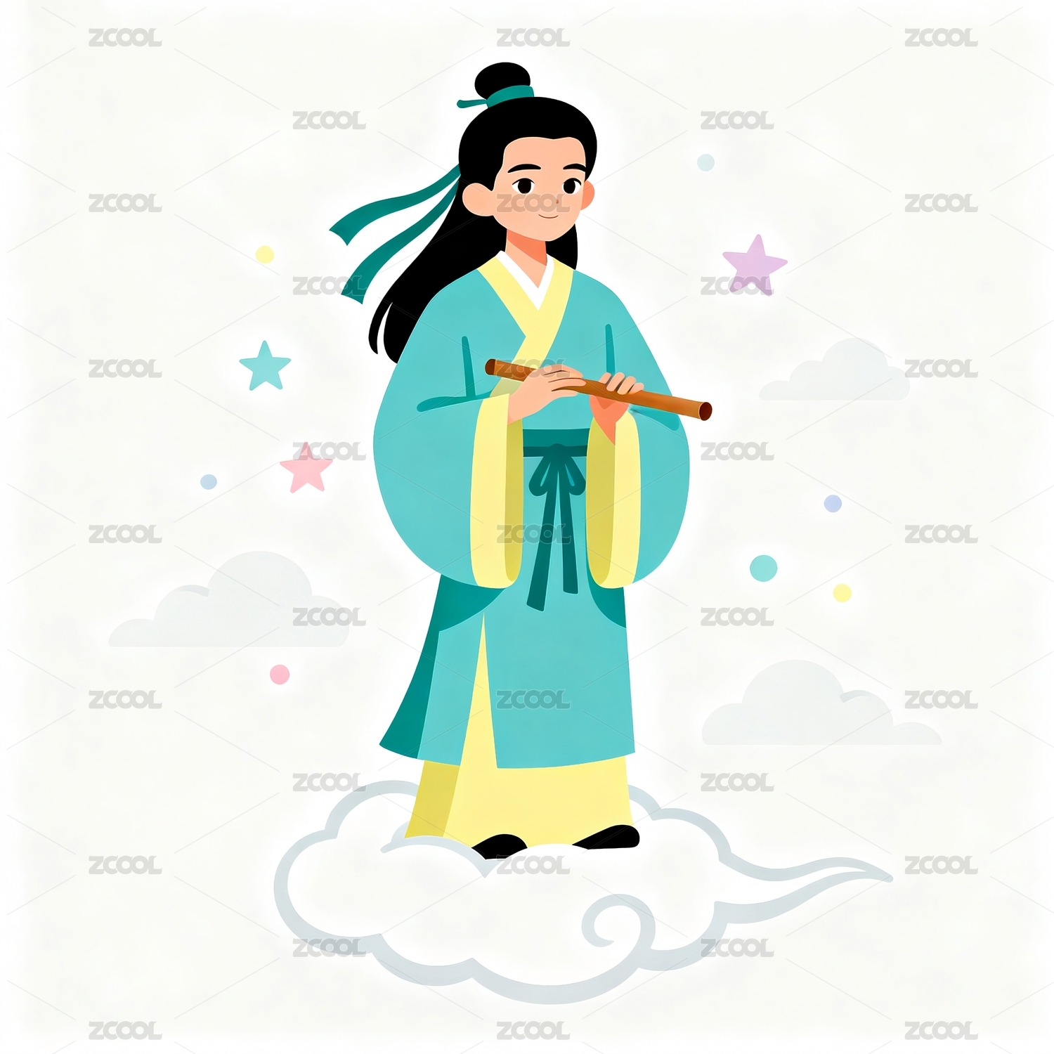 人物手持笛子站立云上
