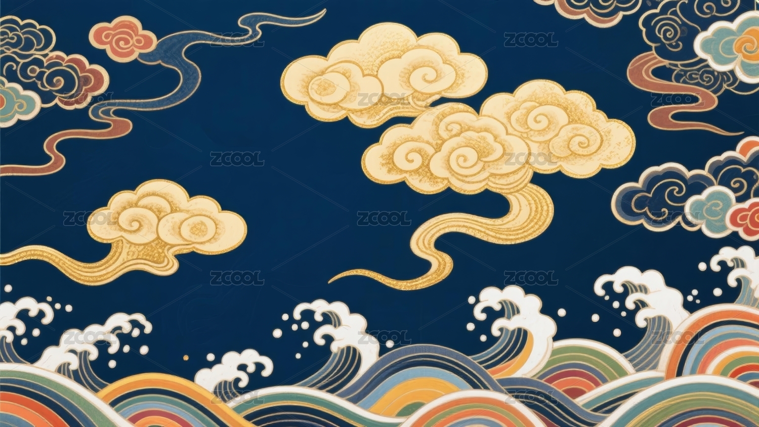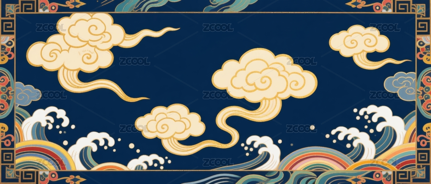 背景,装饰,传统,设计,波浪,云,云朵,图案,蓝色,纹样