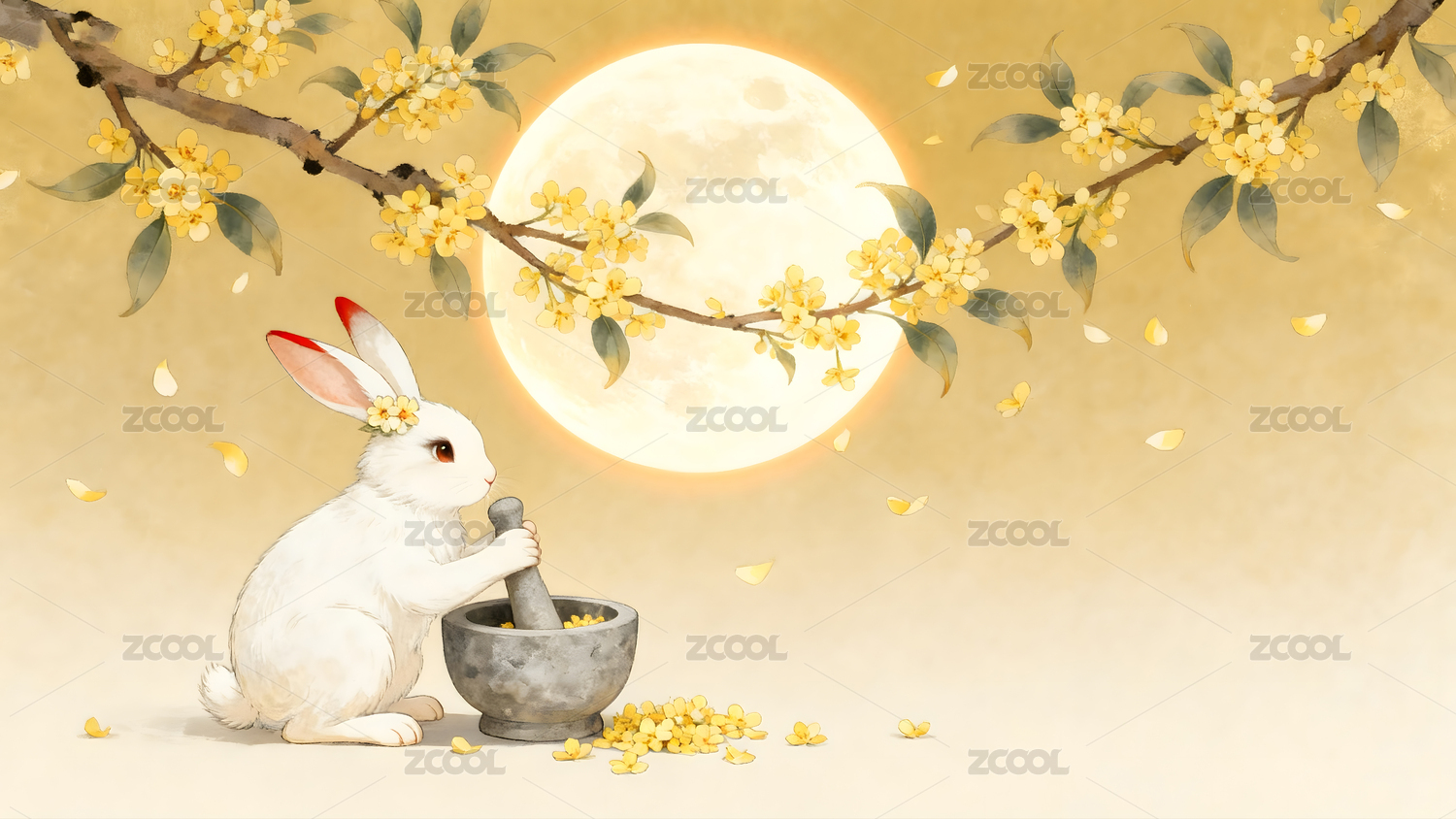 兔子,月亮,玉兔,夜晚,背景,白色,圆月,桂花,中秋,黄色
