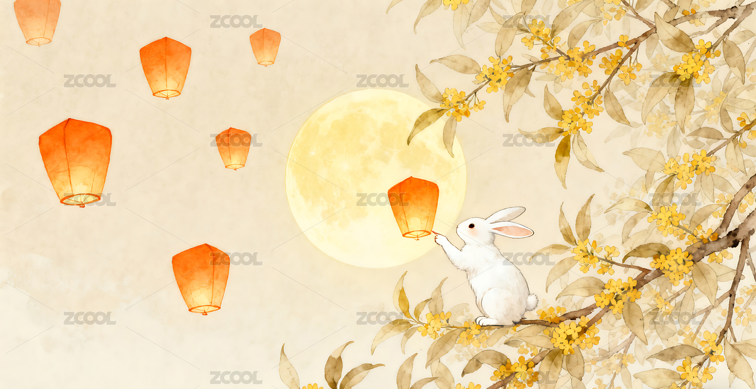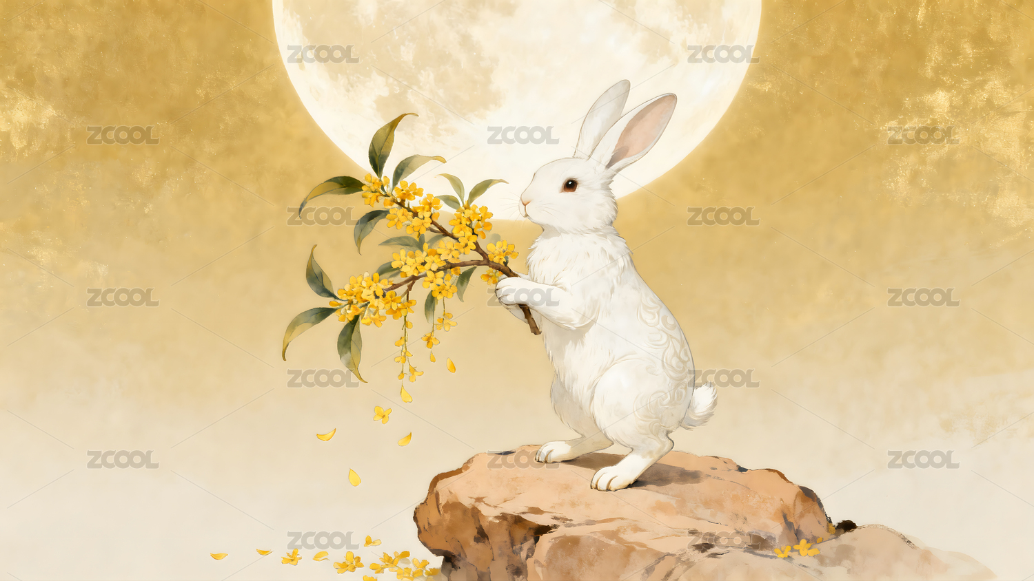 兔子,月亮,玉兔,夜晚,背景,圆月,桂花,中秋,黄色,树枝