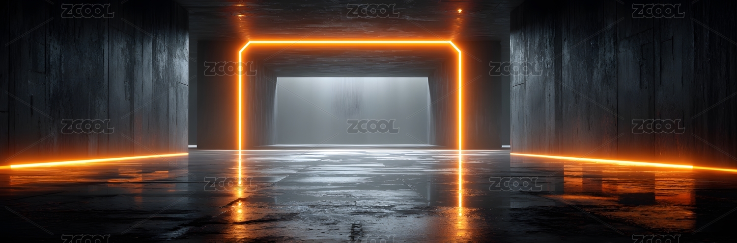 地面,科技,设计,灯光,走廊,橙色,线条,反射,墙面,通道