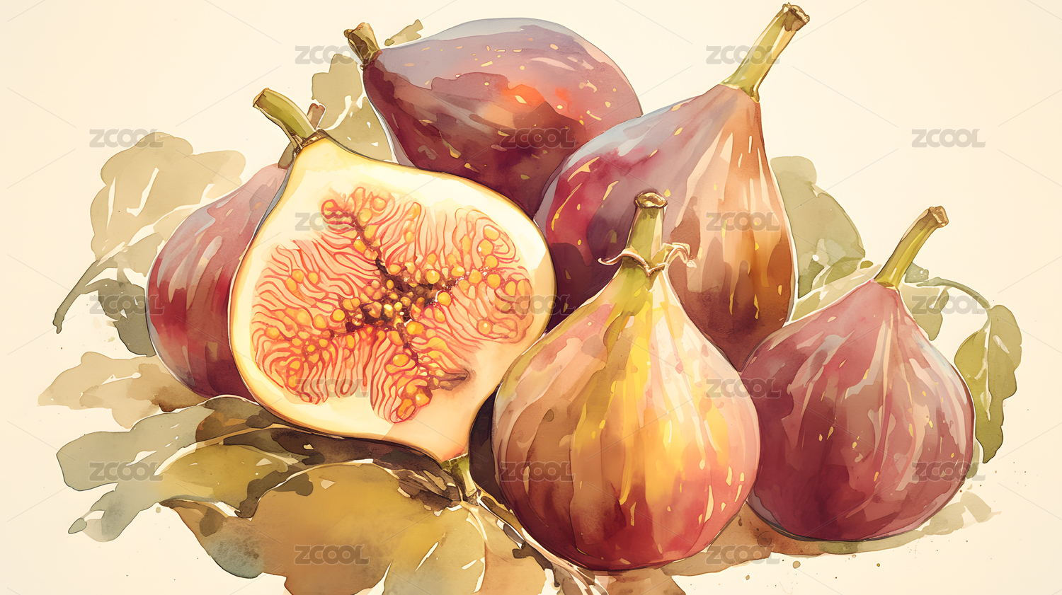 白云,蓝天,天空,树,无花果,果实,枝条,叶子,山脉,田野