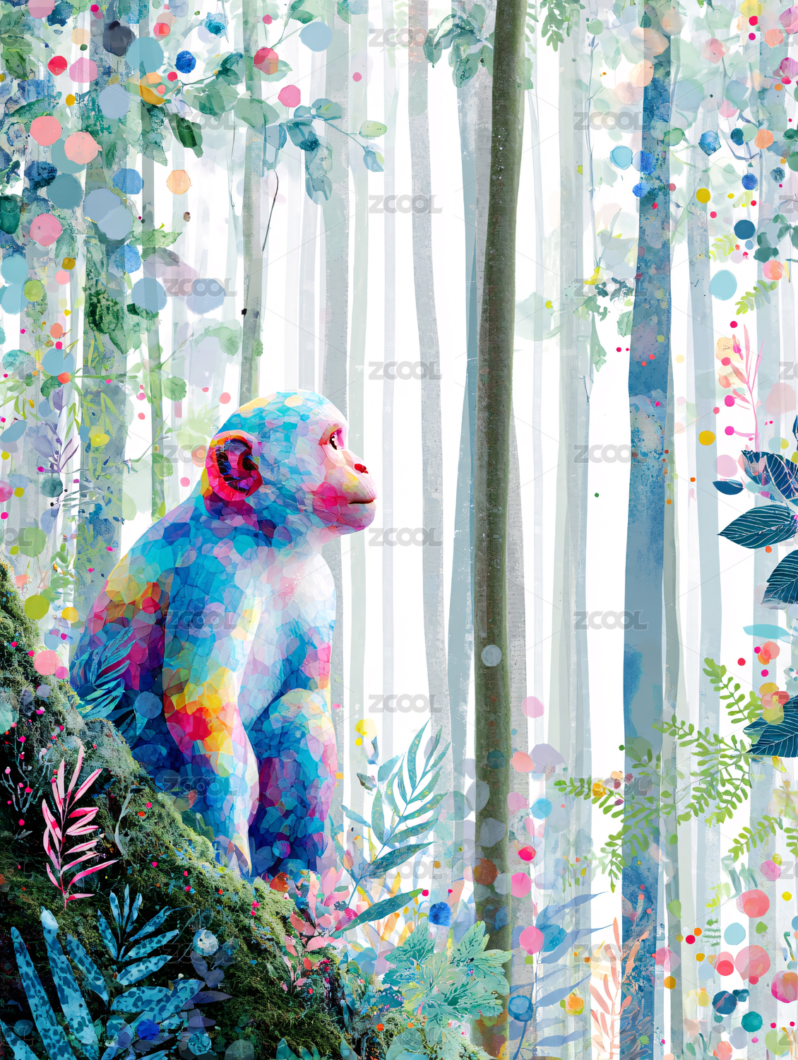 森林里的彩色猴子