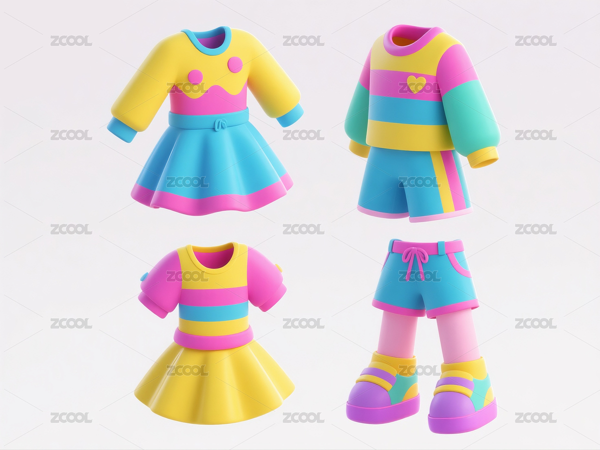 3D,多巴胺,童装,儿童,衣服,上衣,裤子,鞋子,童装素材