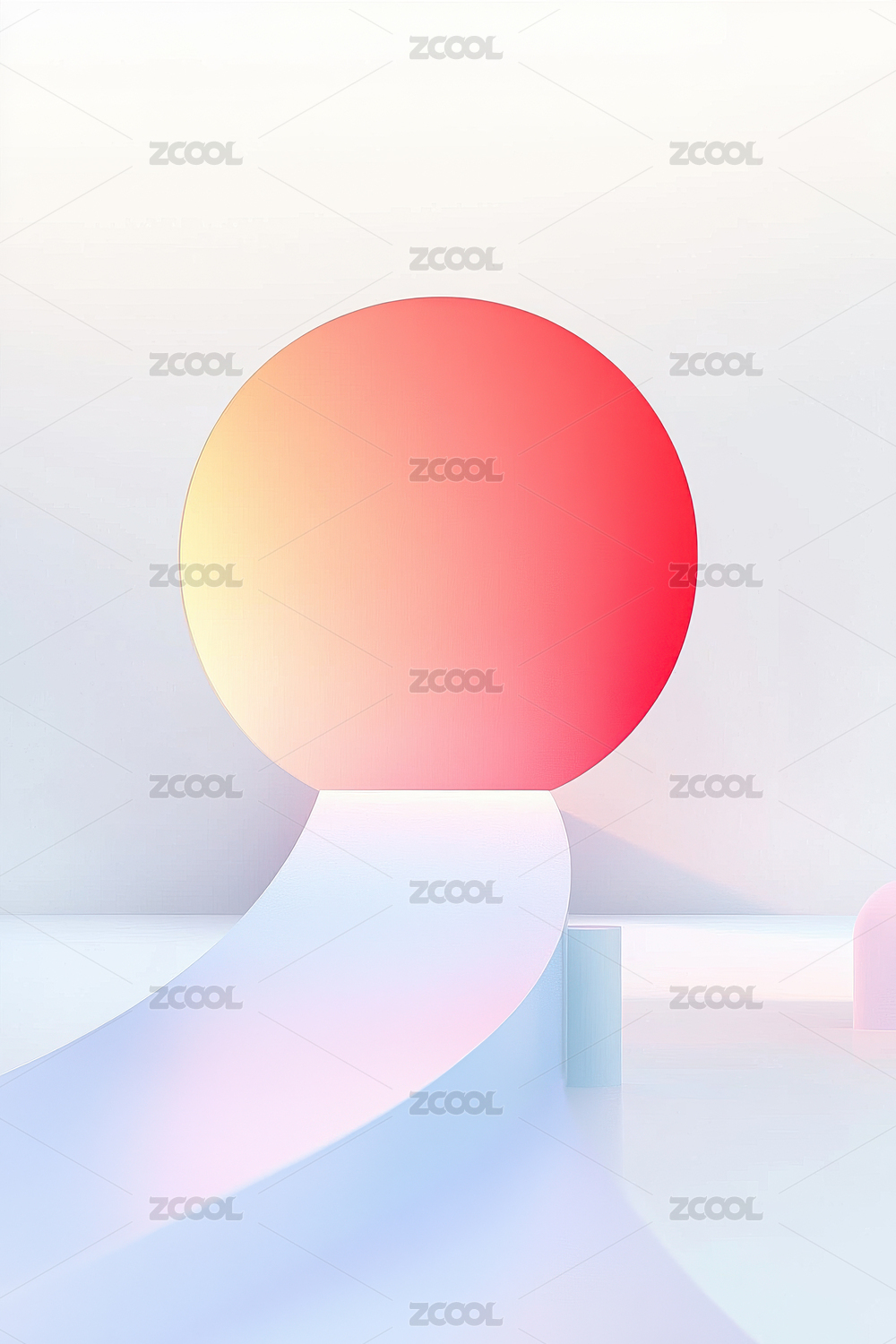 粉色渐变球体与白色立方体