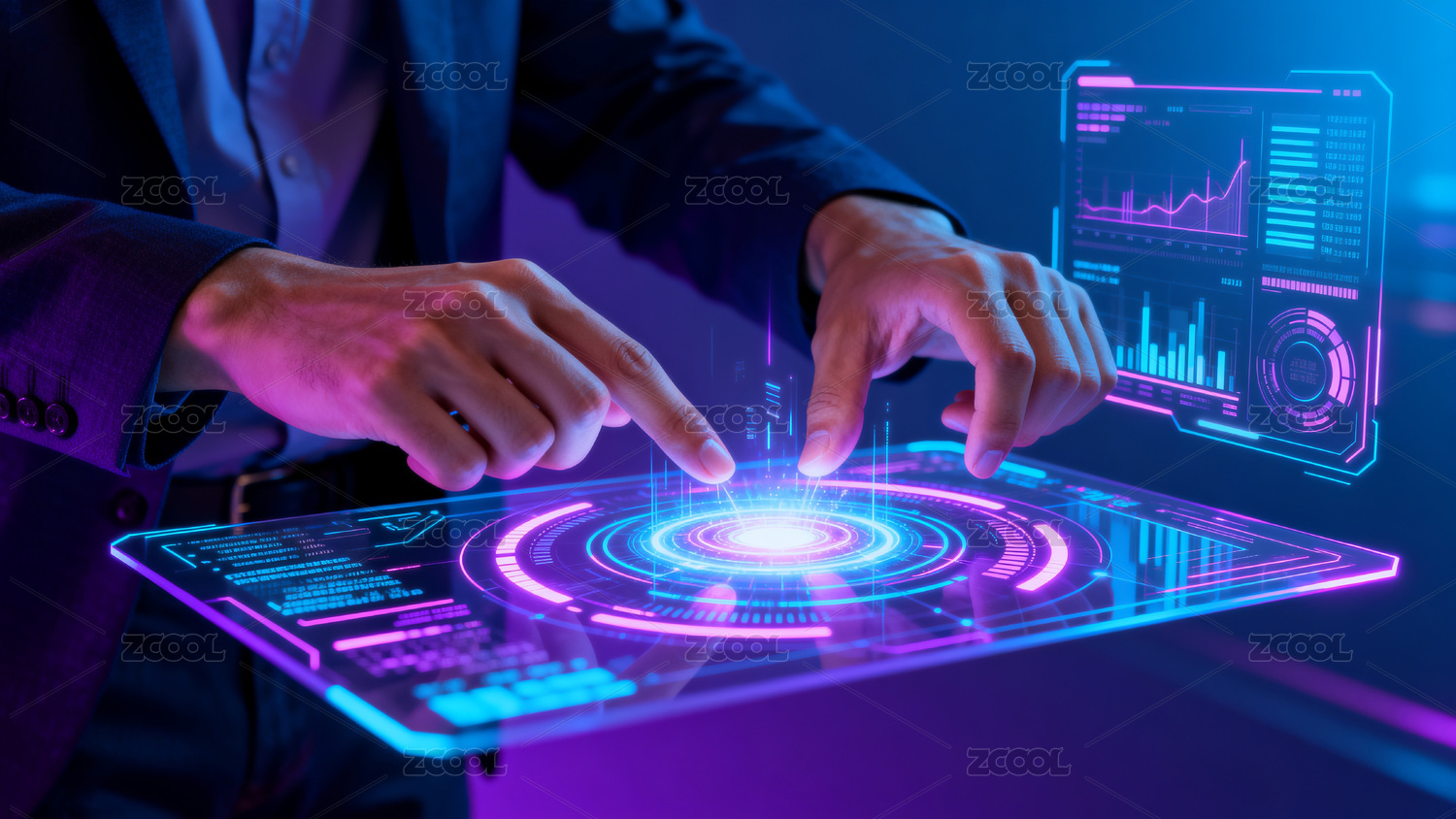 商务人士操作科技图表界面