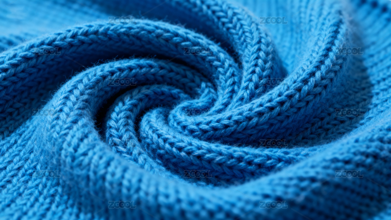 蓝色针织布料螺旋纹理
