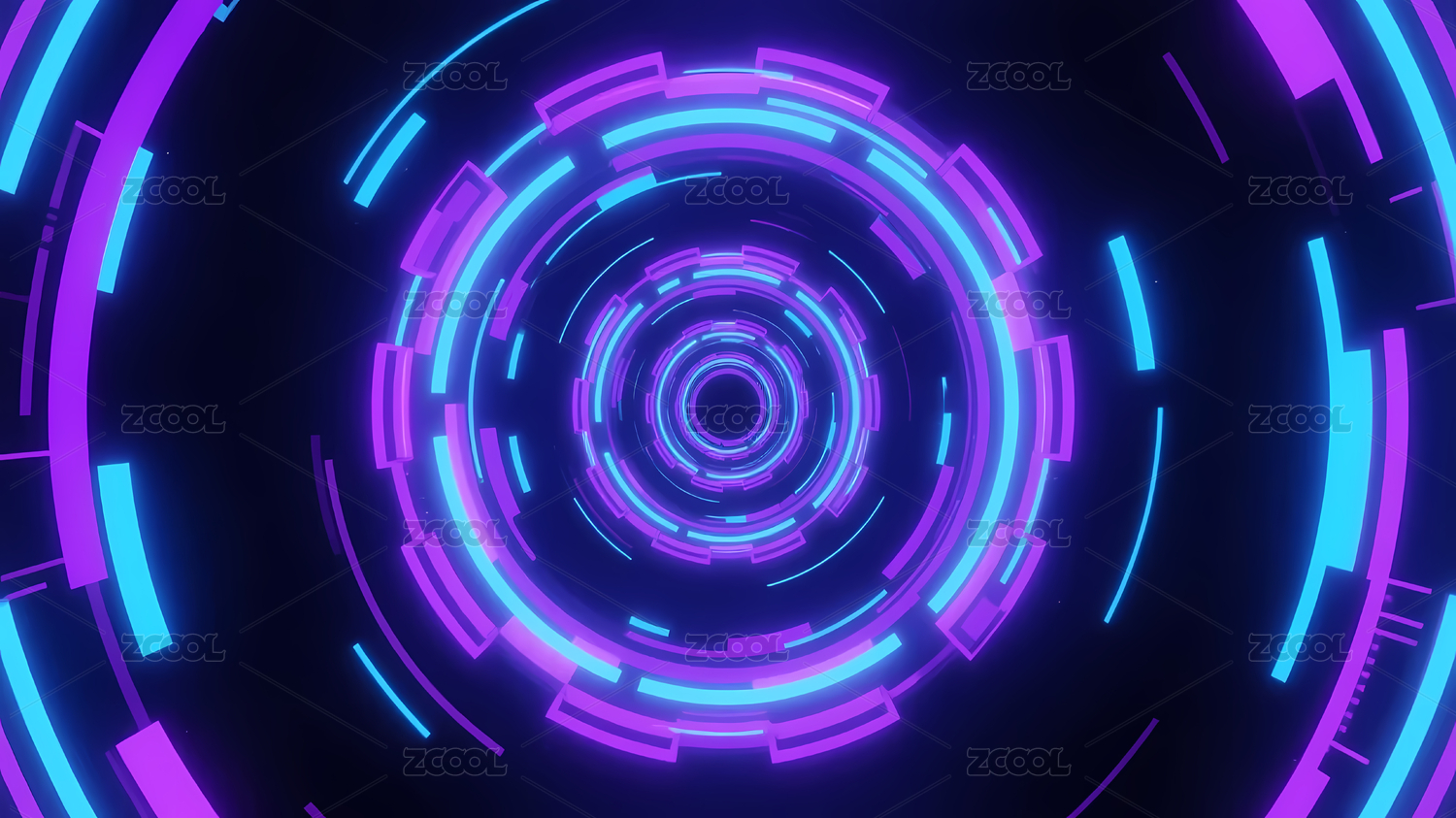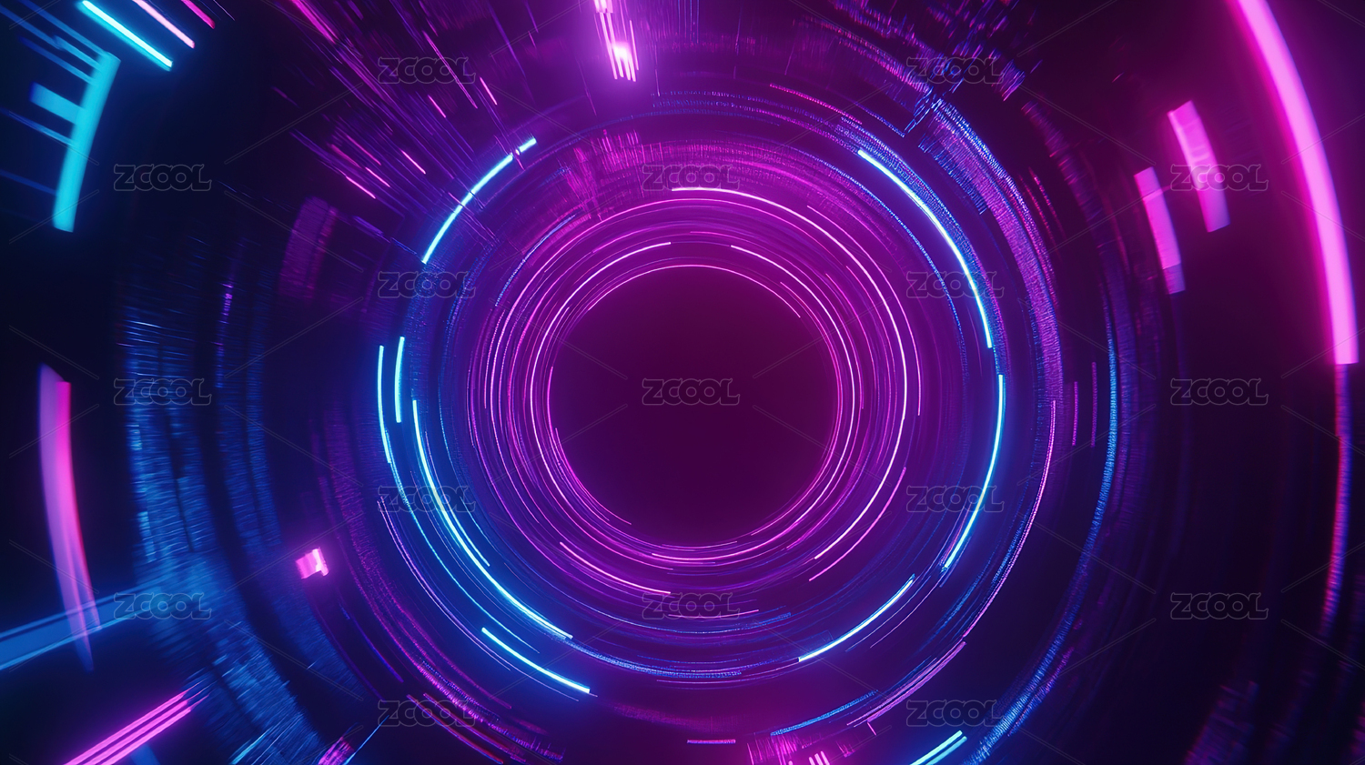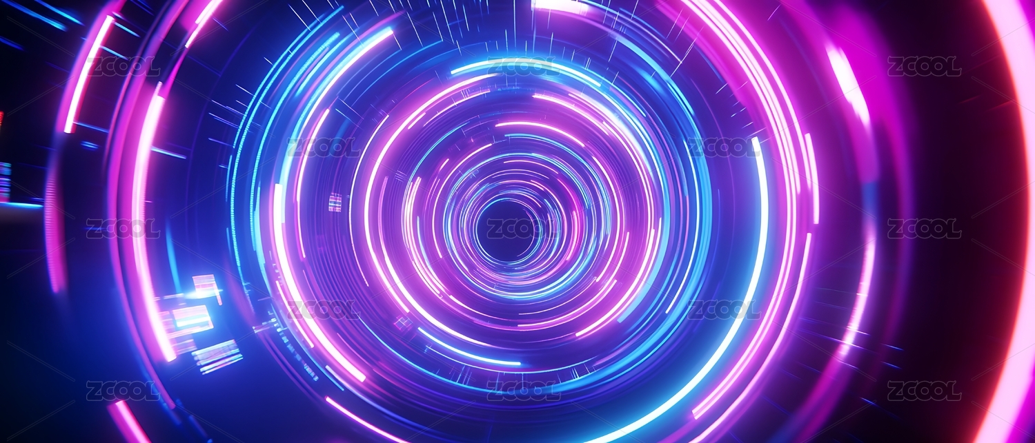 数码蓝粉圆形霓虹灯抽象图形海报网页背景