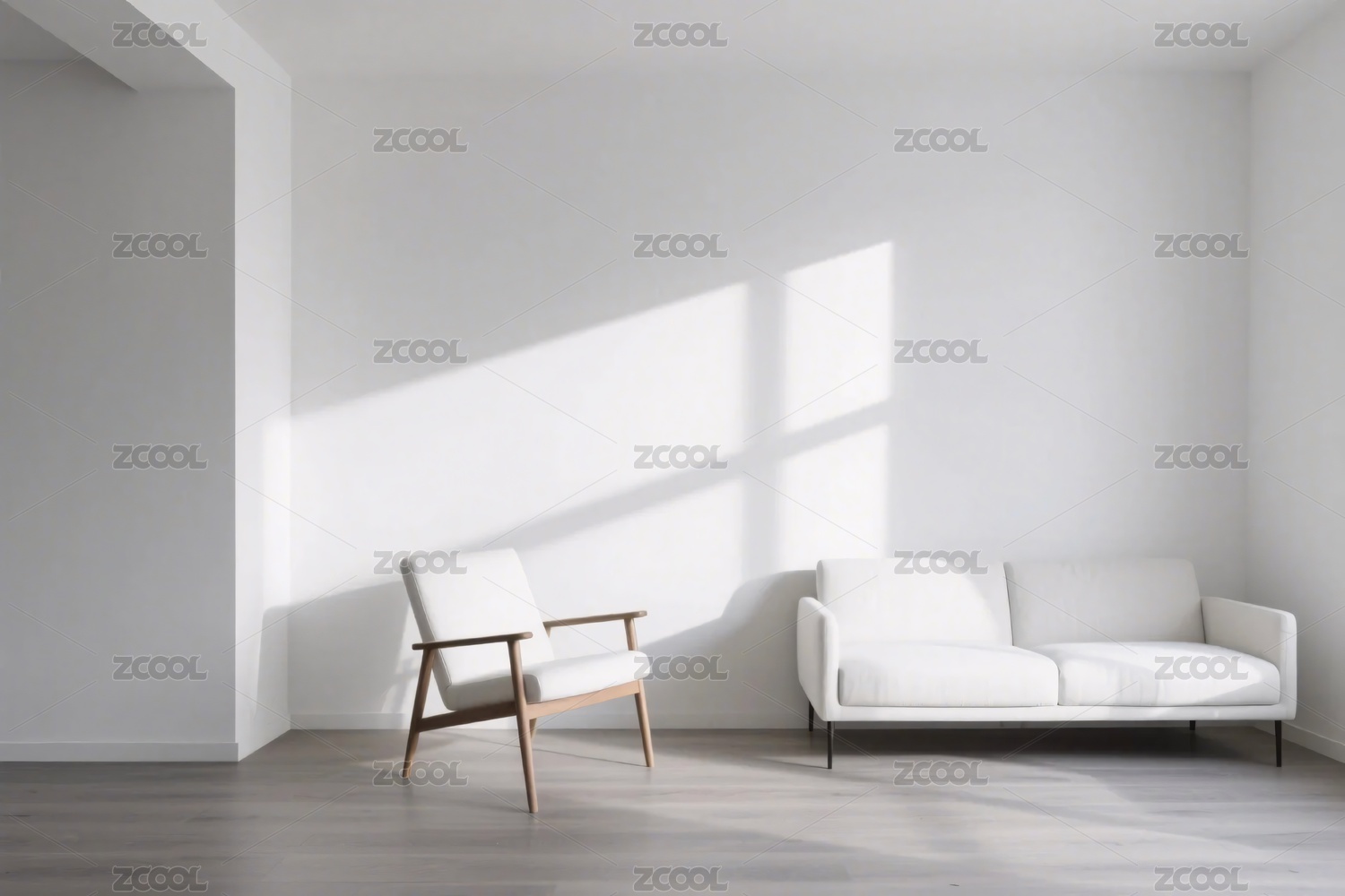 简约空间,沙发,椅子,极简风格,现代设计,室内场景,明亮光线,墙面装饰,简约布置,家具摆放