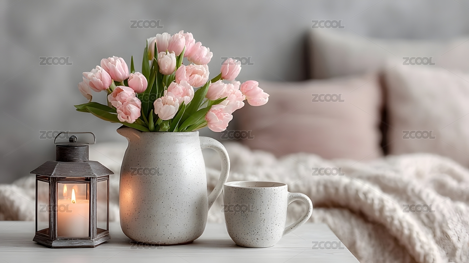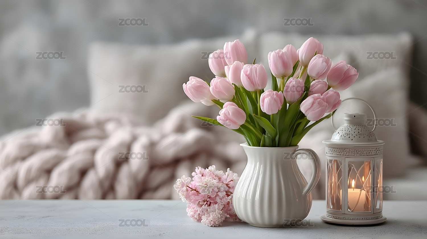 粉色郁金香与温馨室内