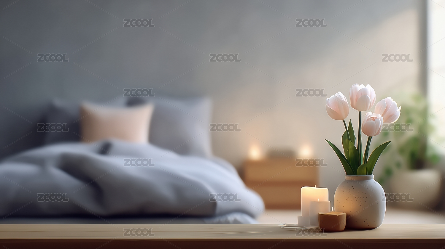 温馨卧室烛光与郁金香