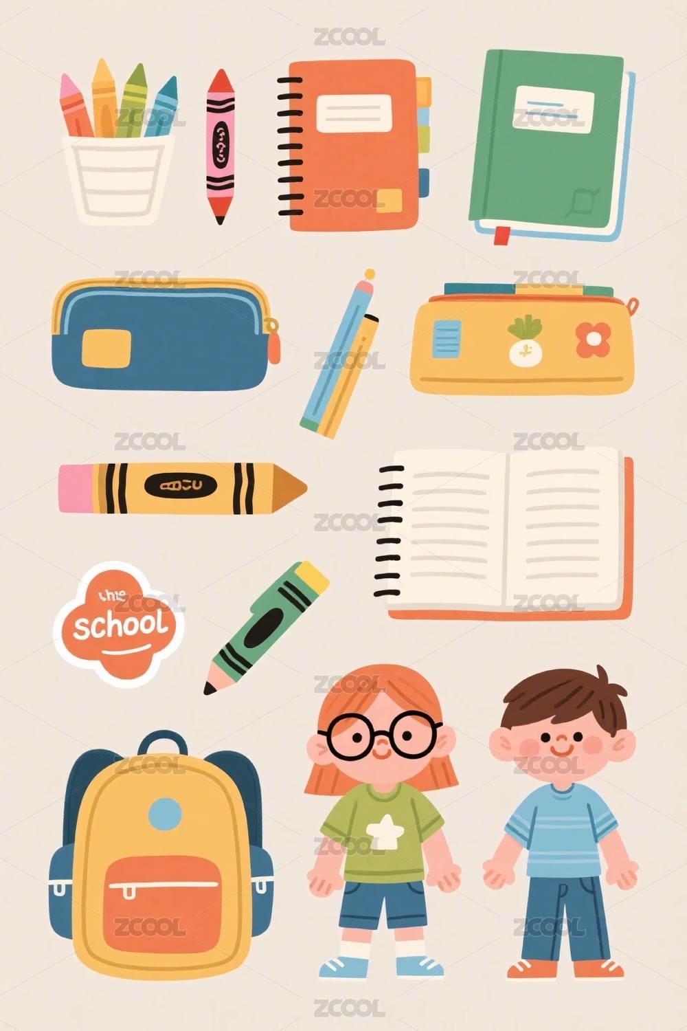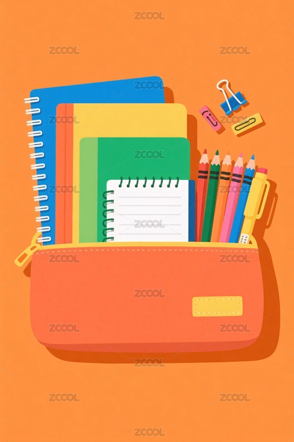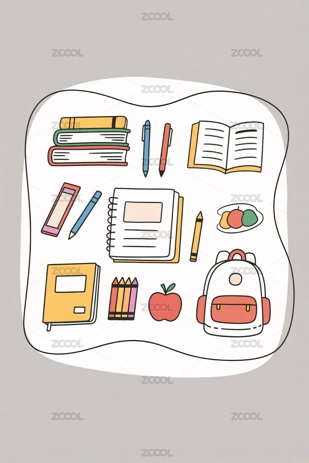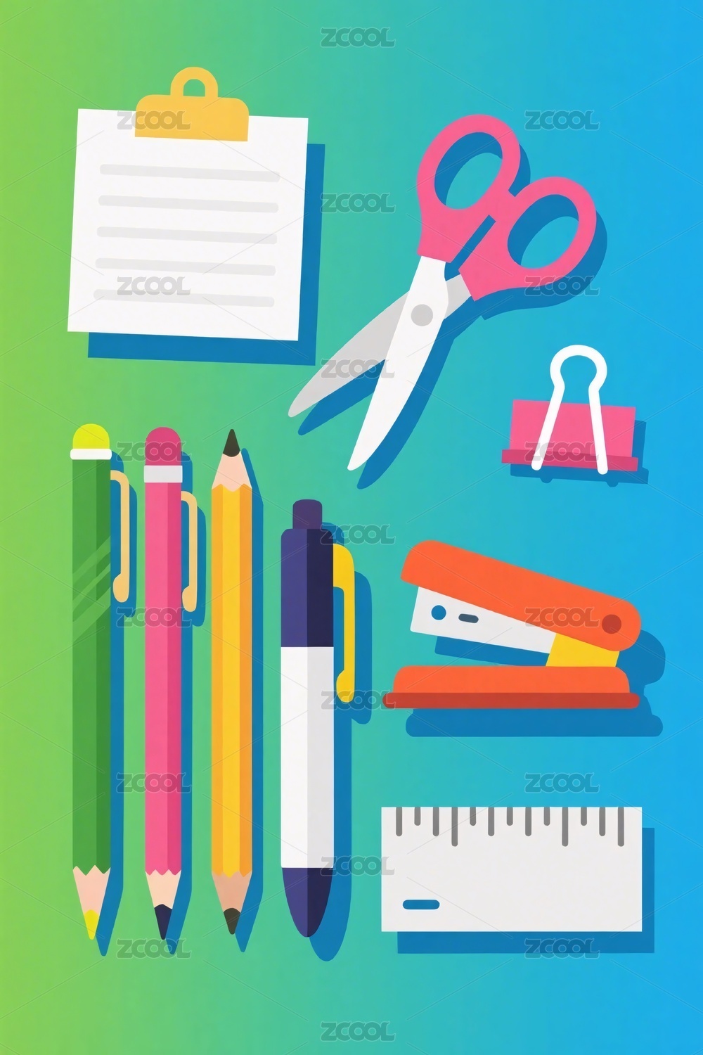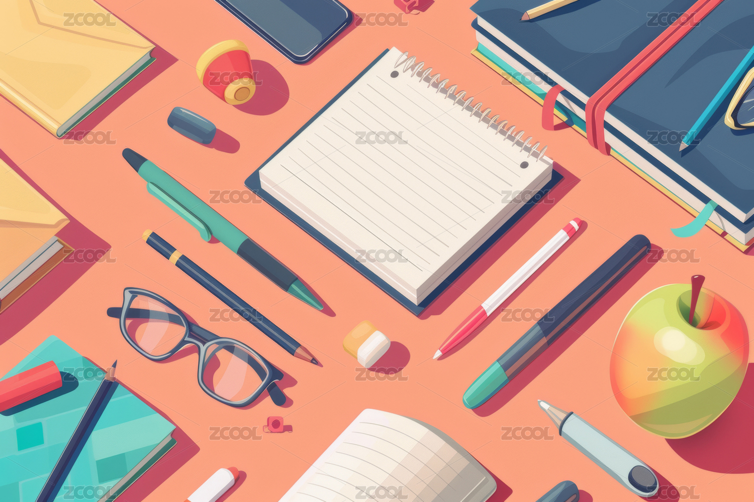 笔记本,铅笔,尺子,剪刀,胶带,教材,文具,插画,学习,素材
