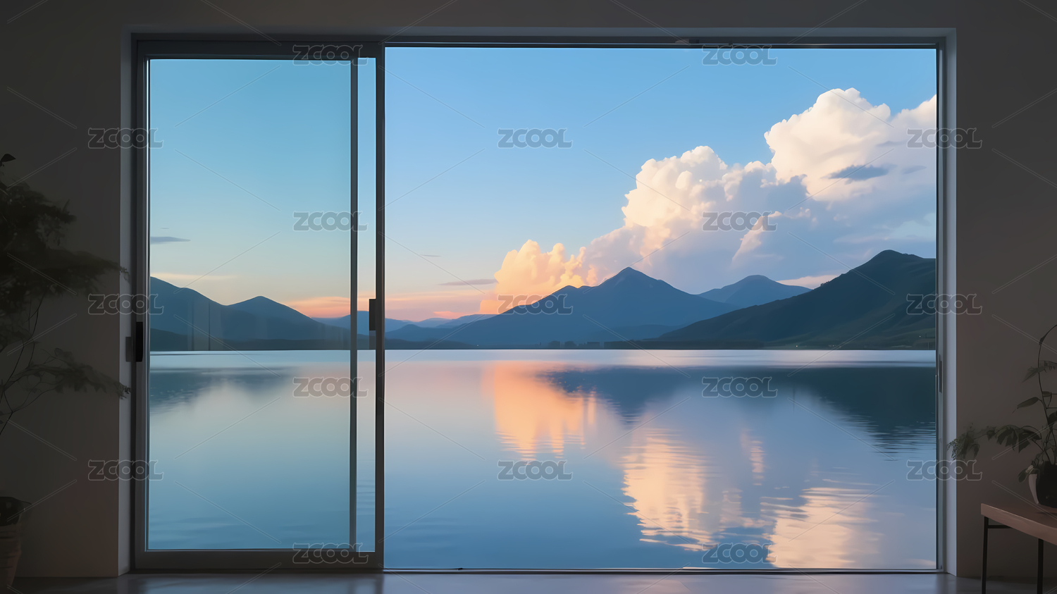 山水,湖泊,室内,摇椅,风景,自然,窗景,宁静,清新,自然景观