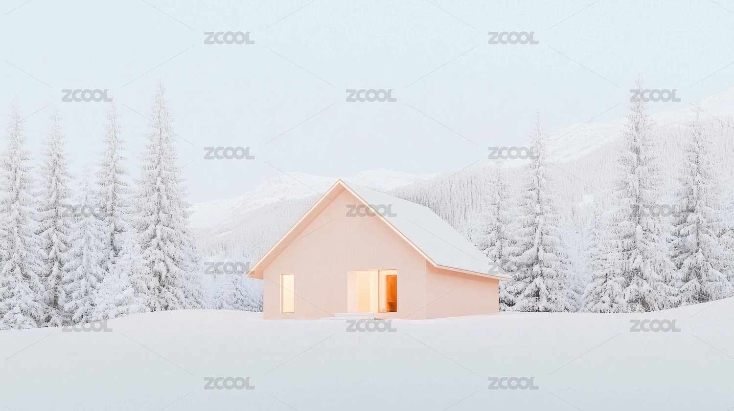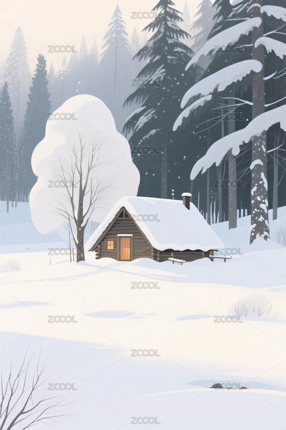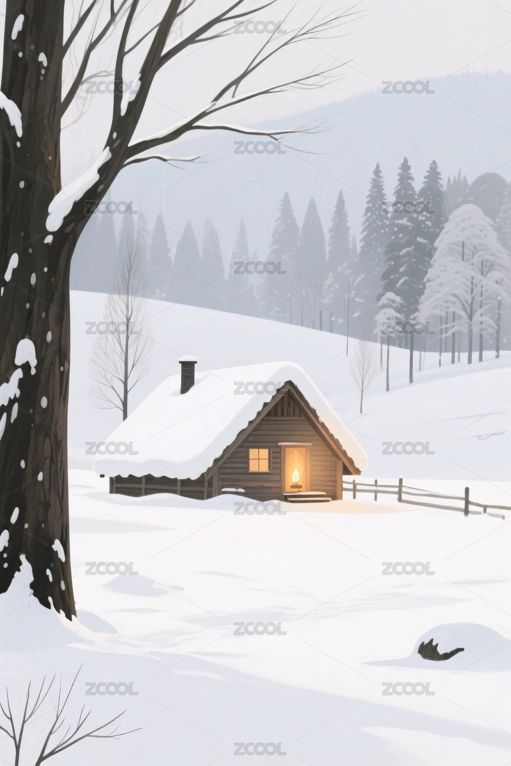 雪夜小屋的温暖光芒 冬日童话小屋的静谧