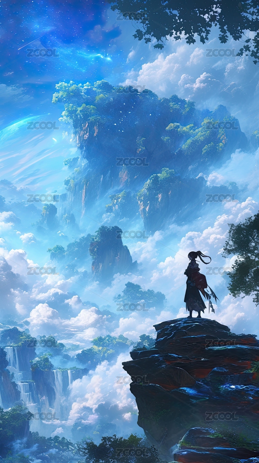 云端之上孤影眺望奇幻世界