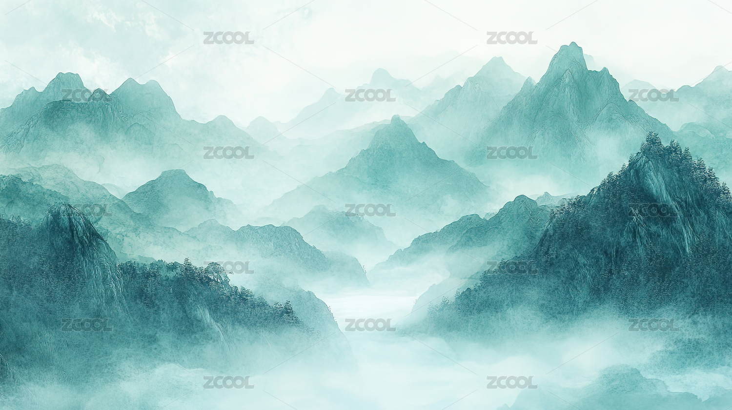 自然,天空,远景,静谧,雾气,轮廓,朦胧,山脉,起伏,山水