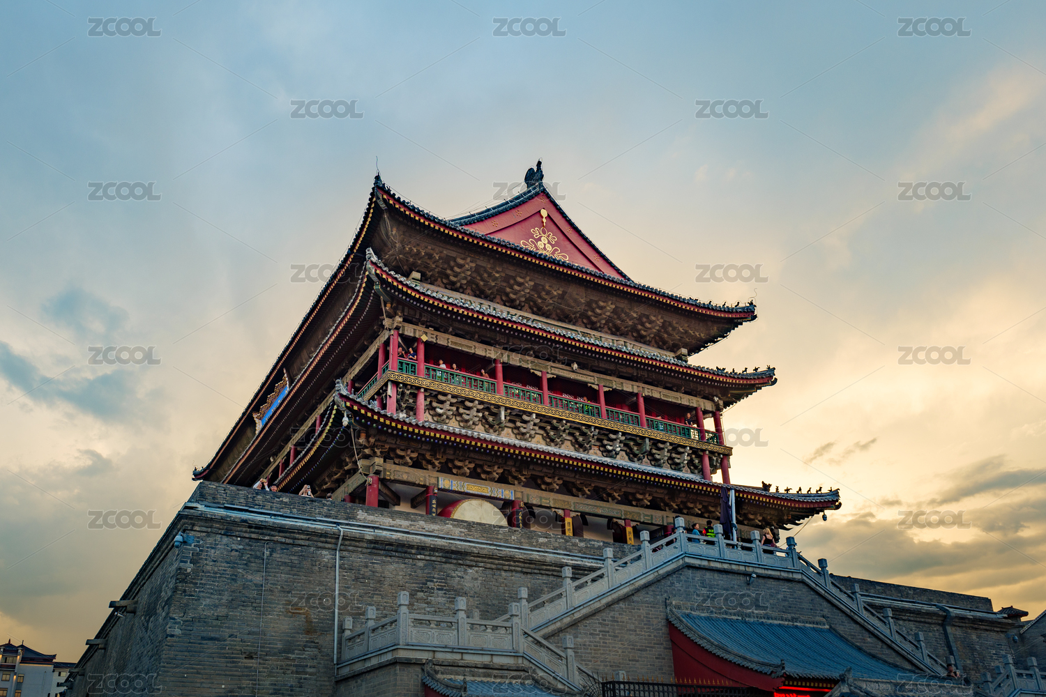 陕西西安标志性建筑鼓楼钟楼