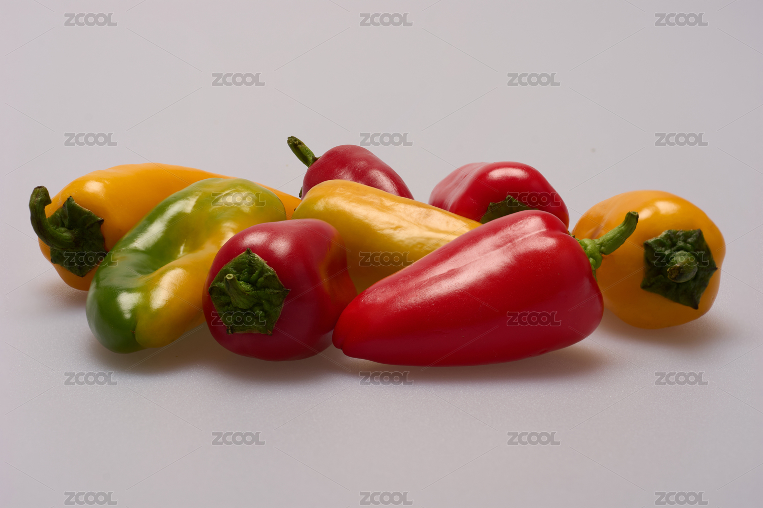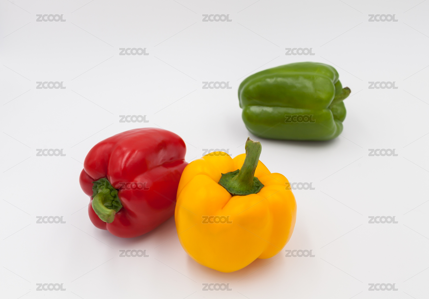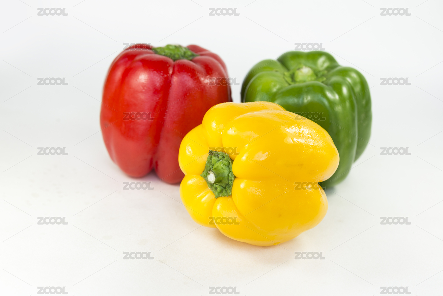 纯白背景新鲜蔬菜果椒青椒柿子椒
