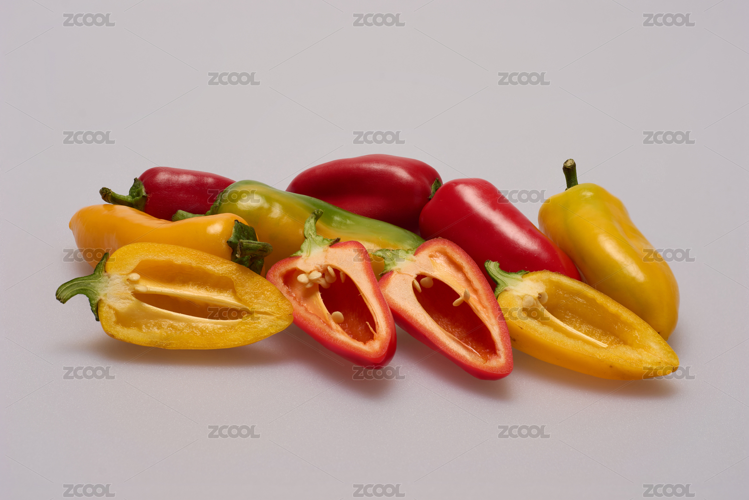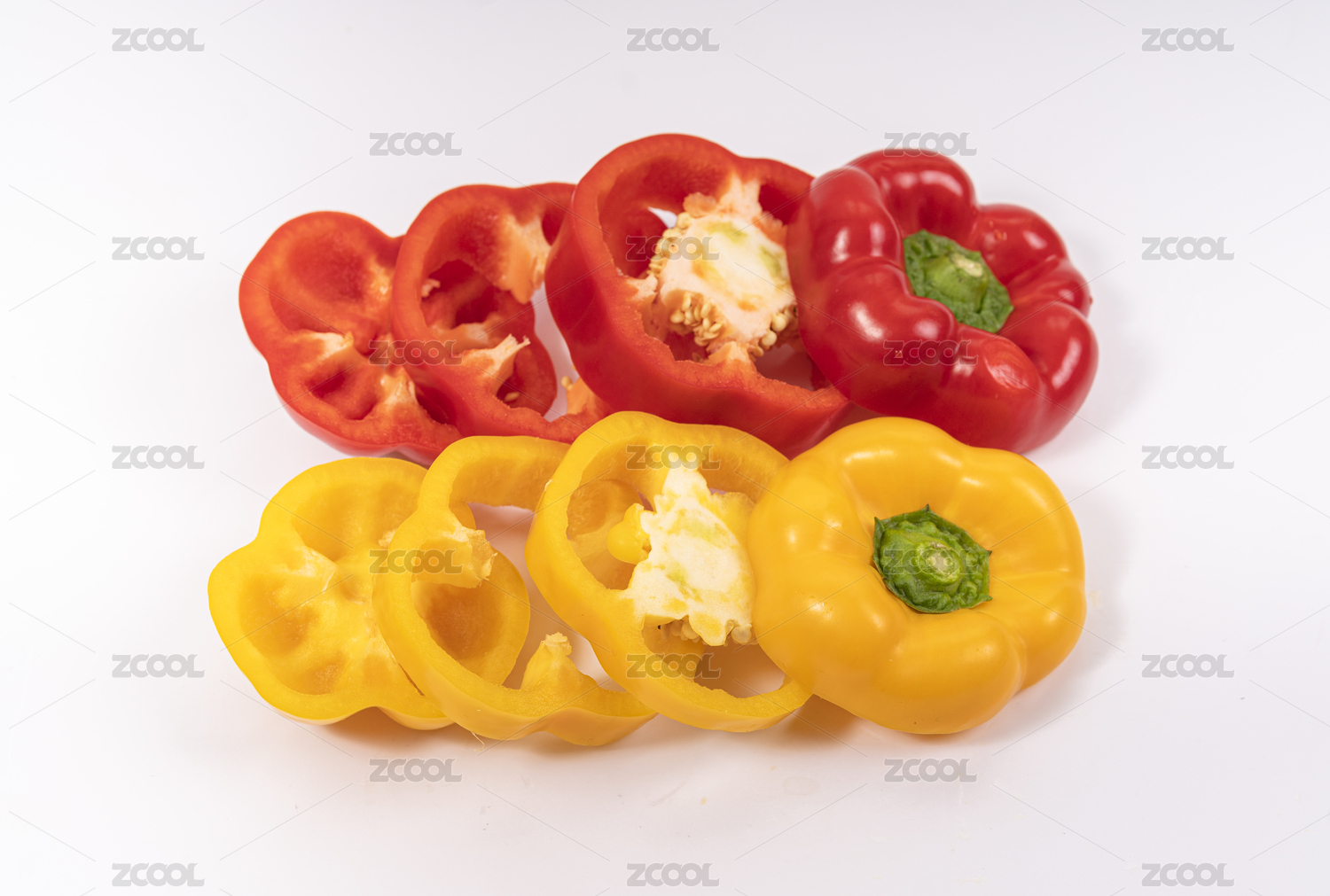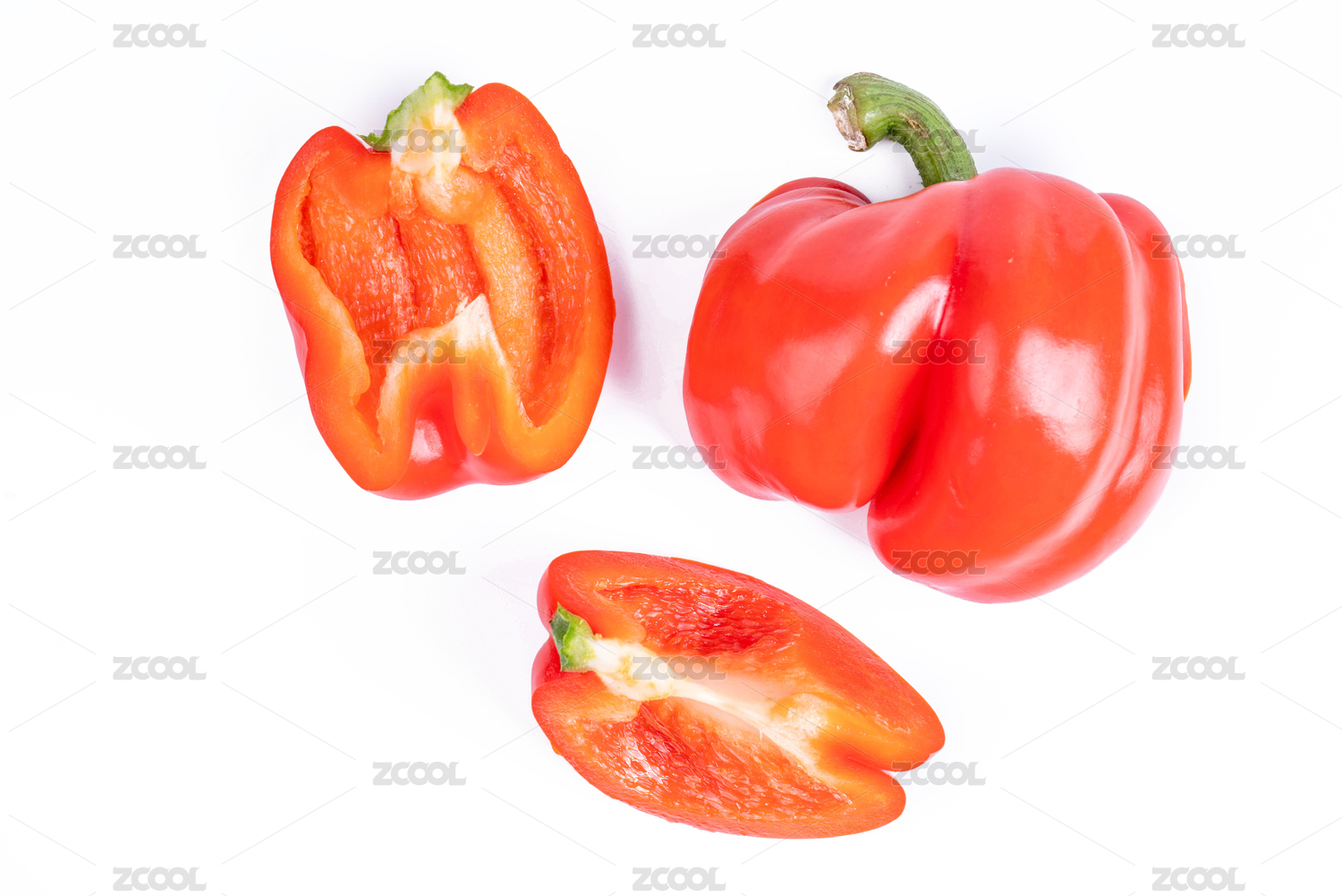 纯白背景新鲜蔬菜果椒青椒柿子椒