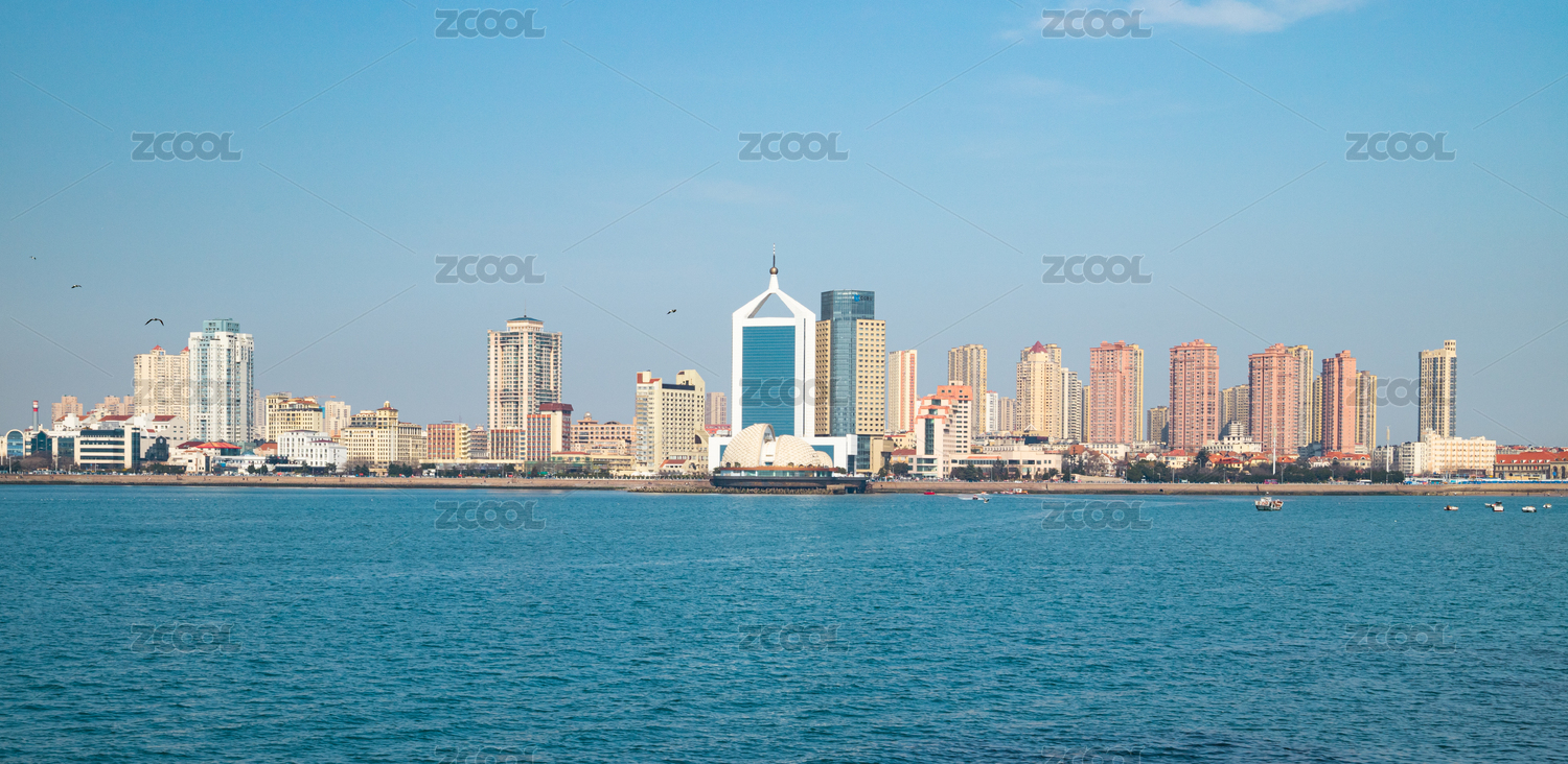 中国青岛海滨城市天际线风光