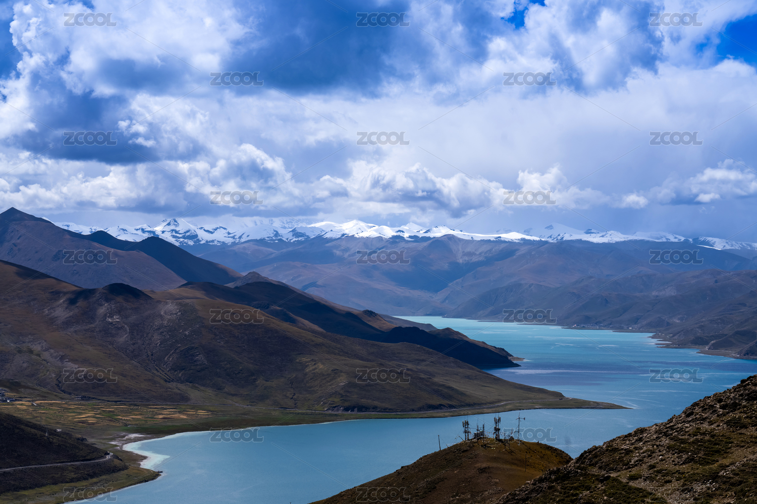 中国西藏山南浪卡子县的羊湖的绝美风光