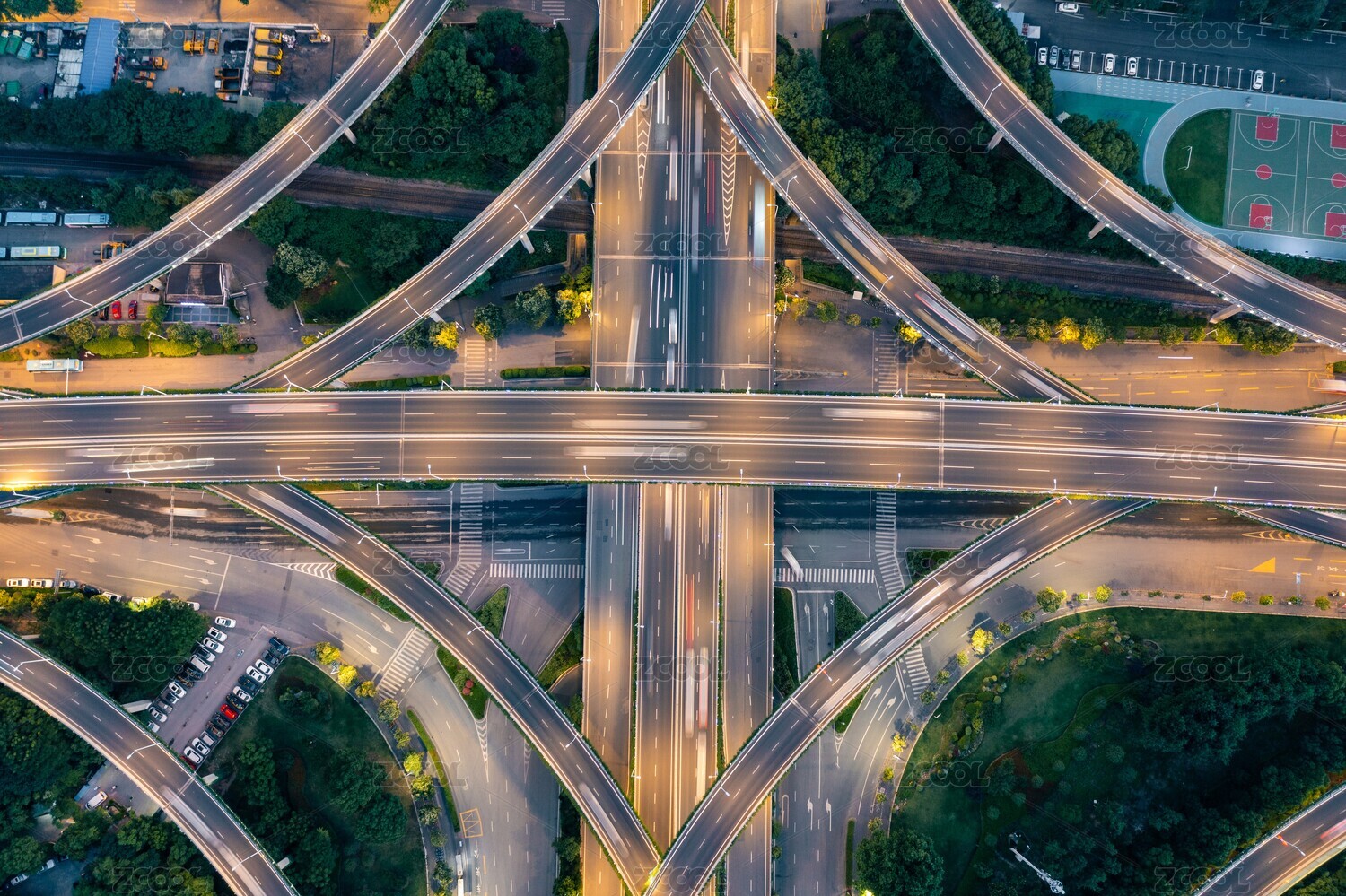 城市高架立交桥道路车流夜景航拍俯瞰视角