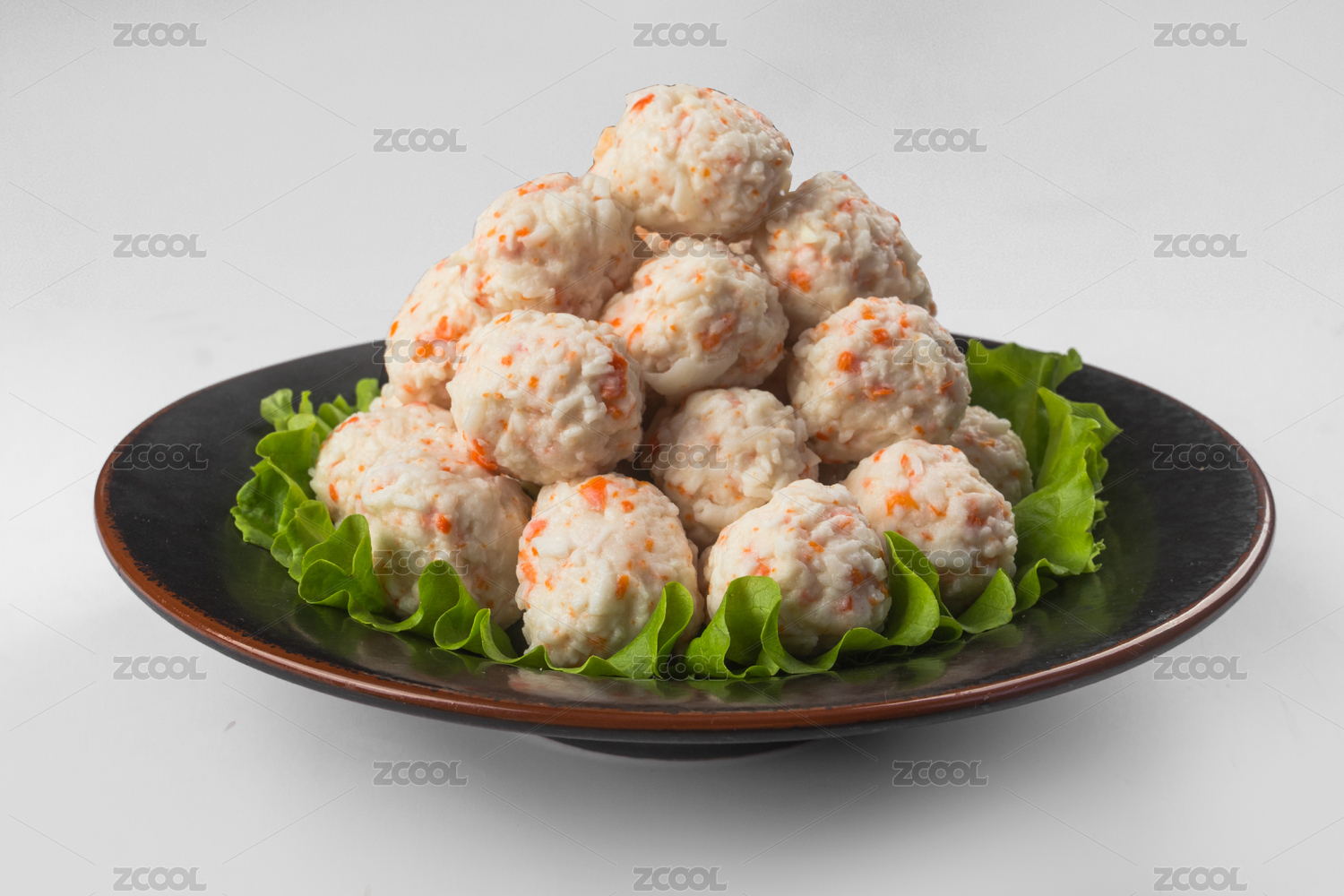 白背景白盘子里的肉丸子