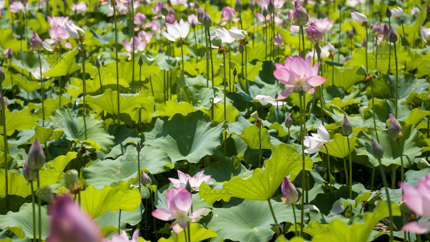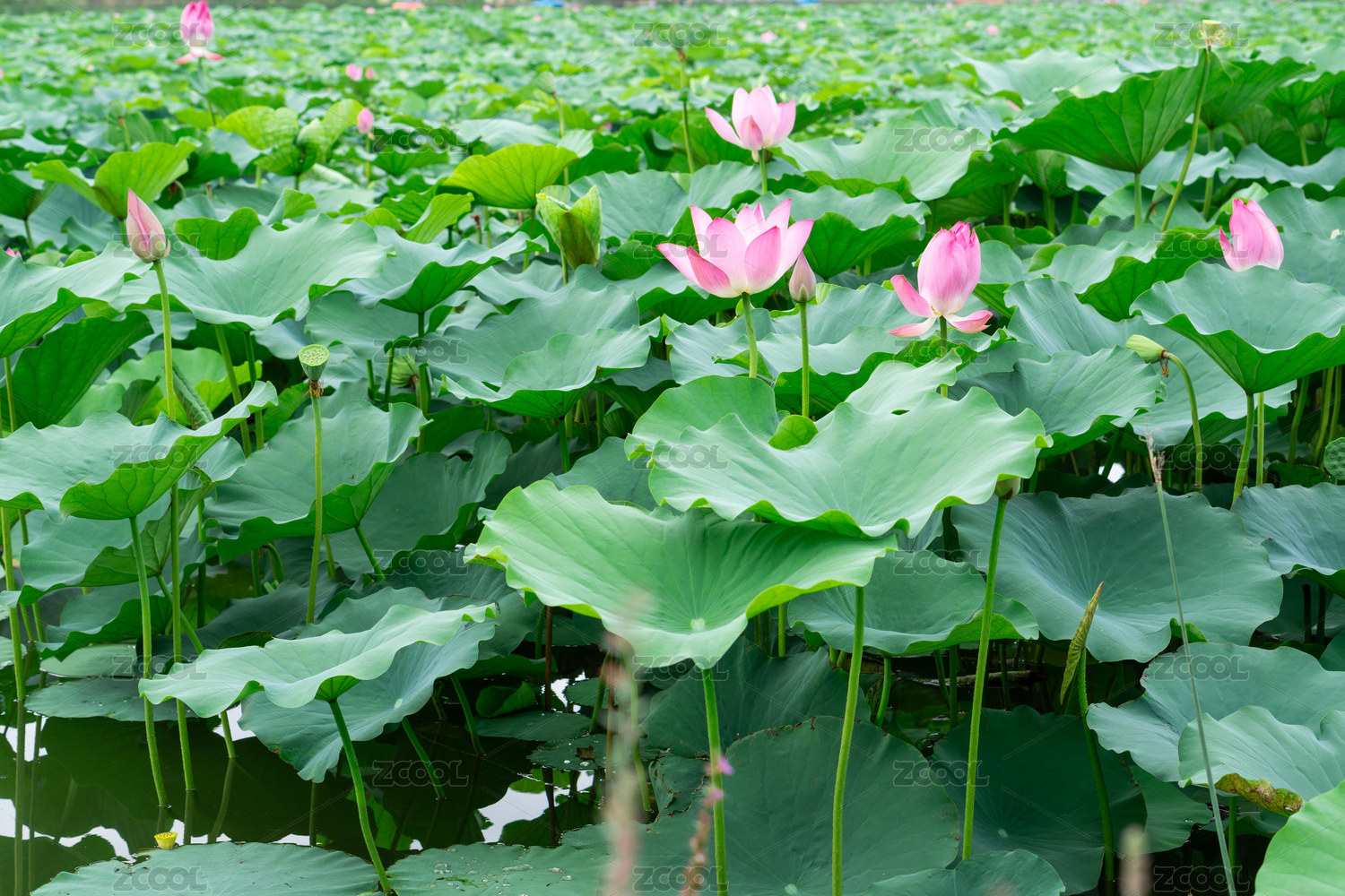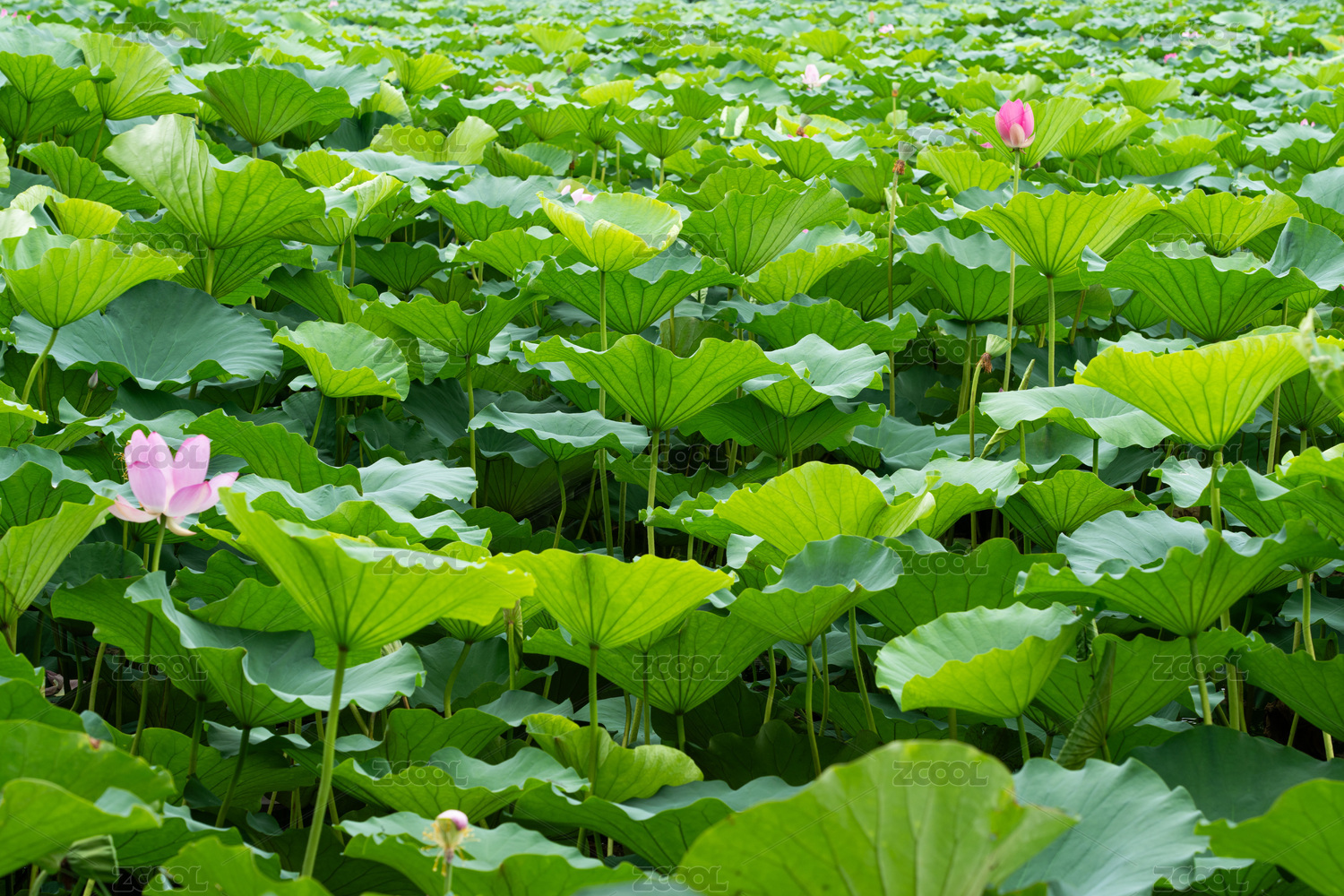 夏天立夏夏至一大片绿色荷花池的风景背景图