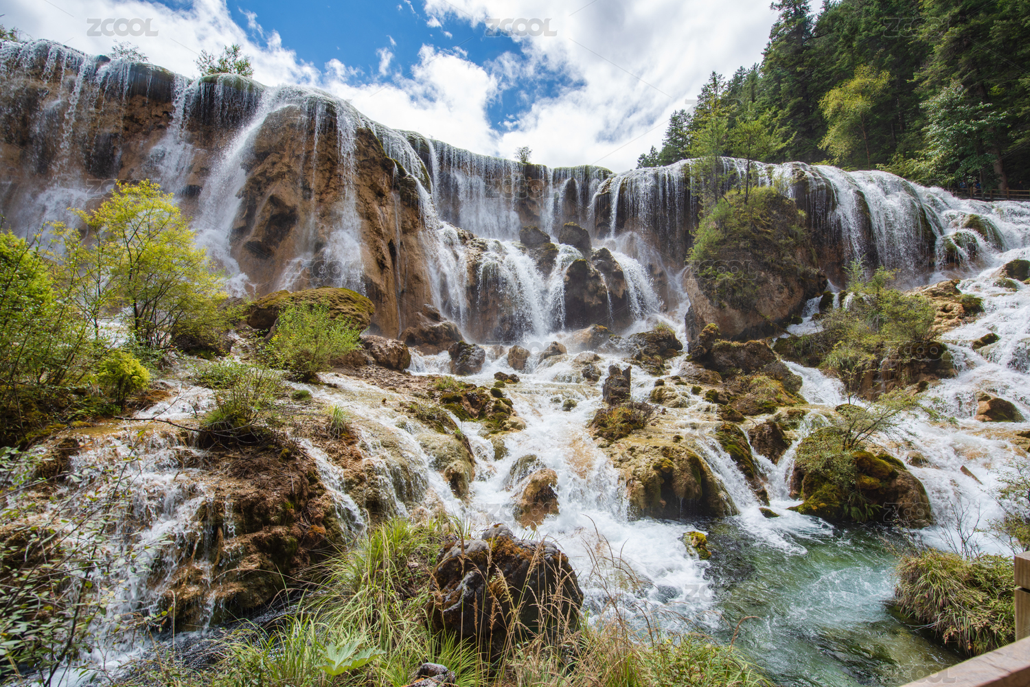 中国四川阿坝九寨沟珍珠滩瀑布的风光